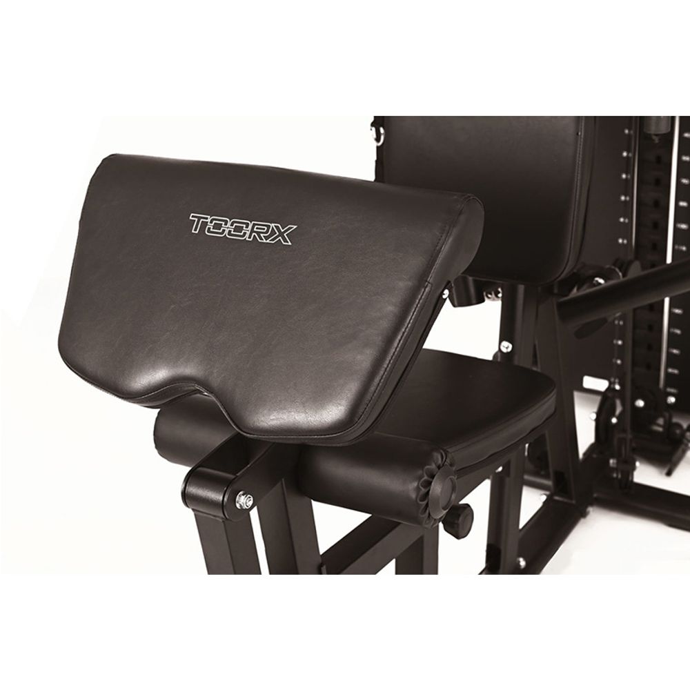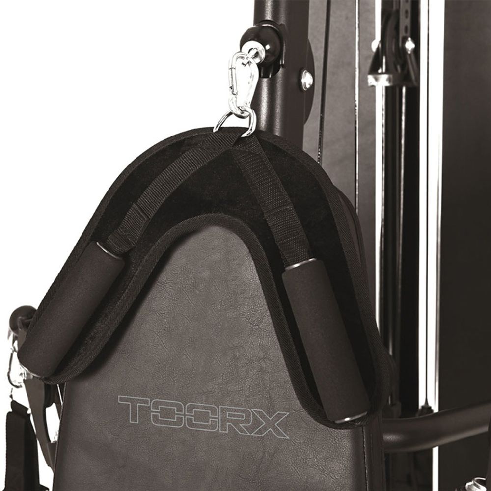 Πολυόργανο Toorx με 2 λαβές πολλαπλής ρύθμισης, τροχαλία πλάτης, σχοινί τρικεφάλων και λαβή αστραγάλου. Διαθέτει arm press, ρυθμιζόμενο σε τρία επίπεδα, fly arms ρυθμιζόμενα σε 6 επίπεδα για εκτέλεση πολλών ασκήσεων και καλώδιο ελεύθερης κίνησης.