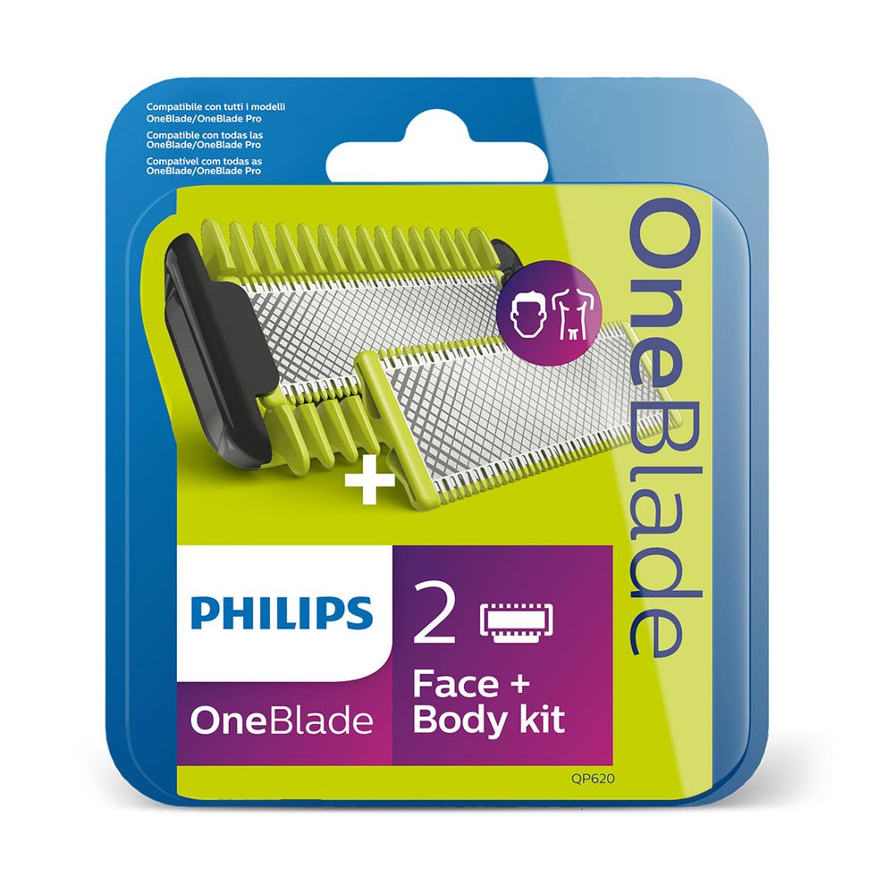 Το Philips OneBlade για πρόσωπο και σώμα τριμάρει, δημιουργεί περιγράμματα και ξυρίζει κάθε μήκους τρίχες. Περιλαμβάνει μια λεπίδα για το πρόσωπο, μια λεπίδα με προστατευτικό για το σώμα και χτένα σώματος. Πες αντίο στα πολλά εργαλεία. Το OneBlade κάνει τα πάντα.