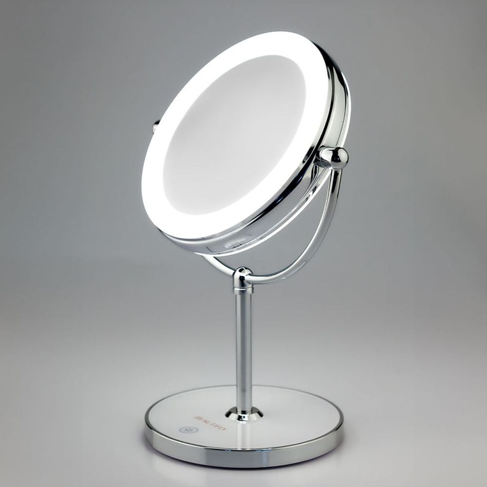 Επιτραπέζιος καθρέφτης διπλής όψης με φωτισμό Beautifly, ιδανικός για μακιγιάζ ανεξάρτητα από την ώρα της ημέρας ή τις συνθήκες φωτισμού στο δωμάτιο. Με 3 επιλογές χρωμάτων φωτισμού, δυνατότητα μεγέθυνσης 10x και λειτουργία Ring Light για ομοιόμορφη φωτισμένη επιφάνεια.