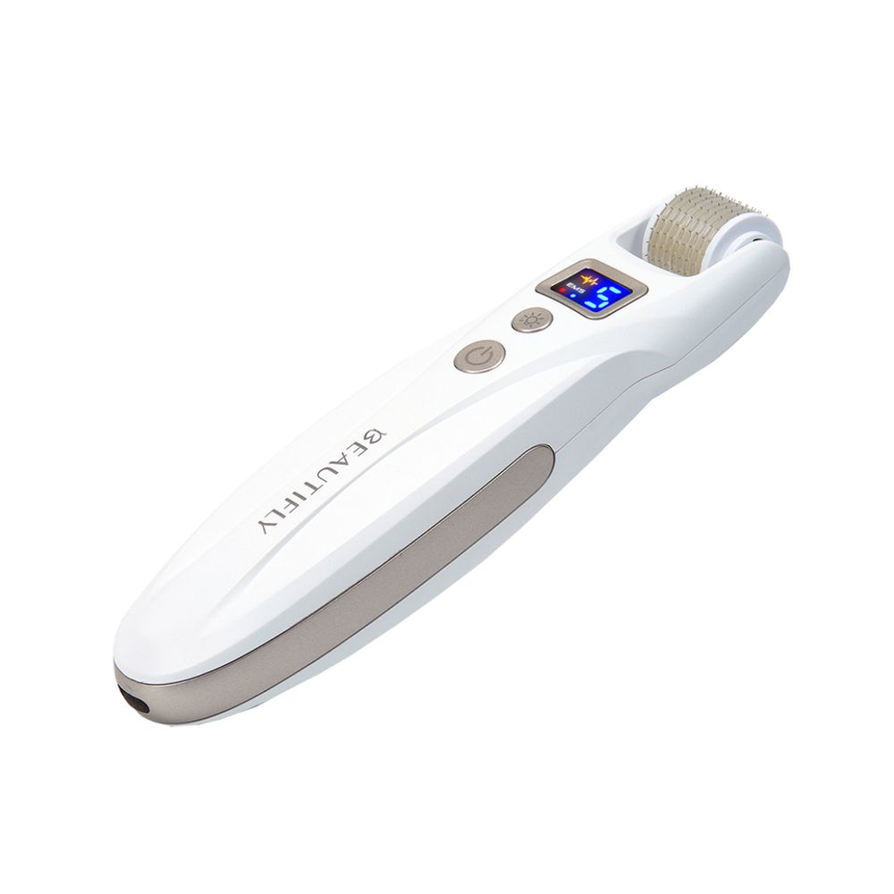 Το Beautifly MicroGlow Pro είναι ένα roller μεσοθεραπείας microneedling με μικροσκοπικές βελόνες 0,5mm από τιτάνιο. Δημιουργεί ελεγχόμενους μικροτραυματισμούς που ενεργοποιούν την παραγωγή κολλαγόνου και ελαστίνης, βελτιώνοντας την υφή της επιδερμίδας και μειώνοντας ρυτίδες. Διαθέτει τρεις λειτουργίες με EMS, δονήσεις και φως για σύσφιξη, αναζωογόνηση και μείωση ατελειών, πέντε επίπεδα έντασης και αυτονομία 120 λεπτών.