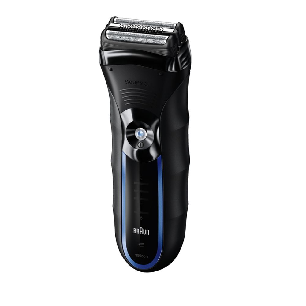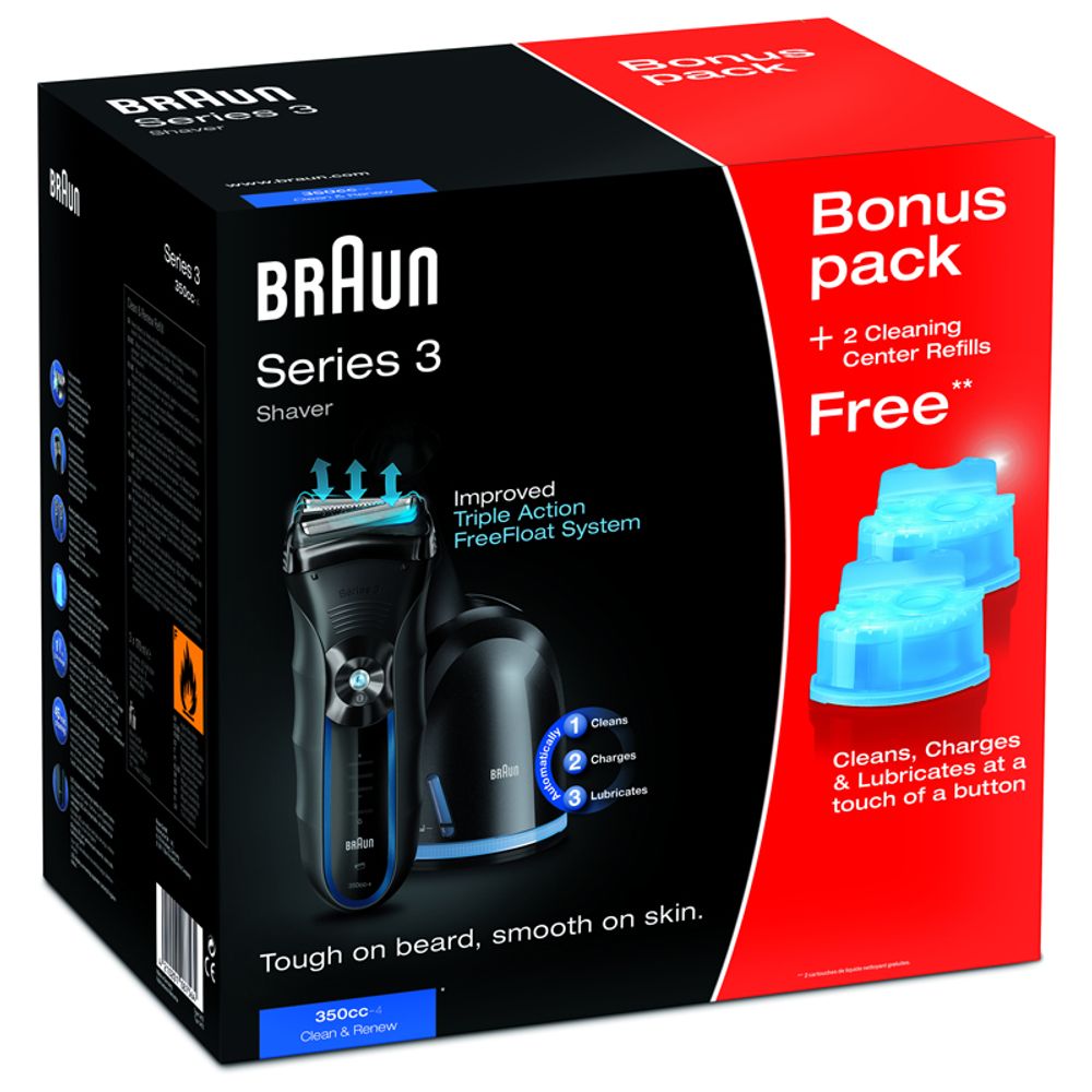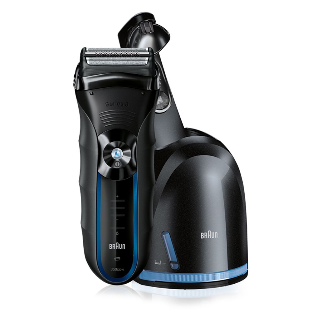 Ξυριστική μηχανή Braun 350cc – 4 με σύστημα Clean & Charge που καθαρίζει, φορτίζει, λιπαίνει και απελευθερώνει αναζωογονητική μυρωδιά λεμονιού.