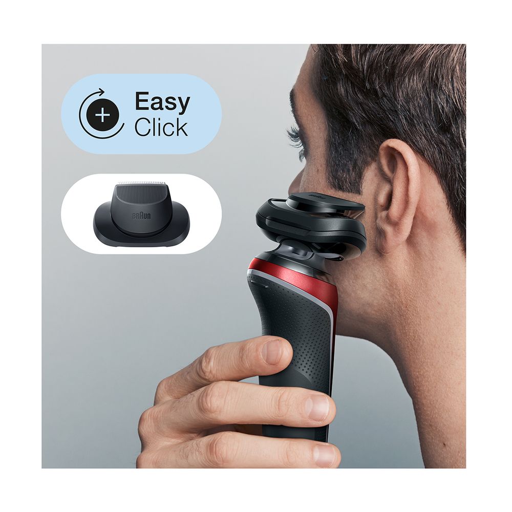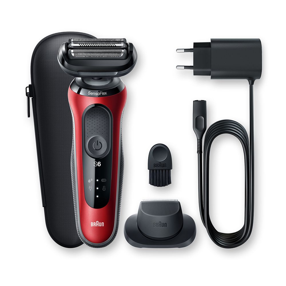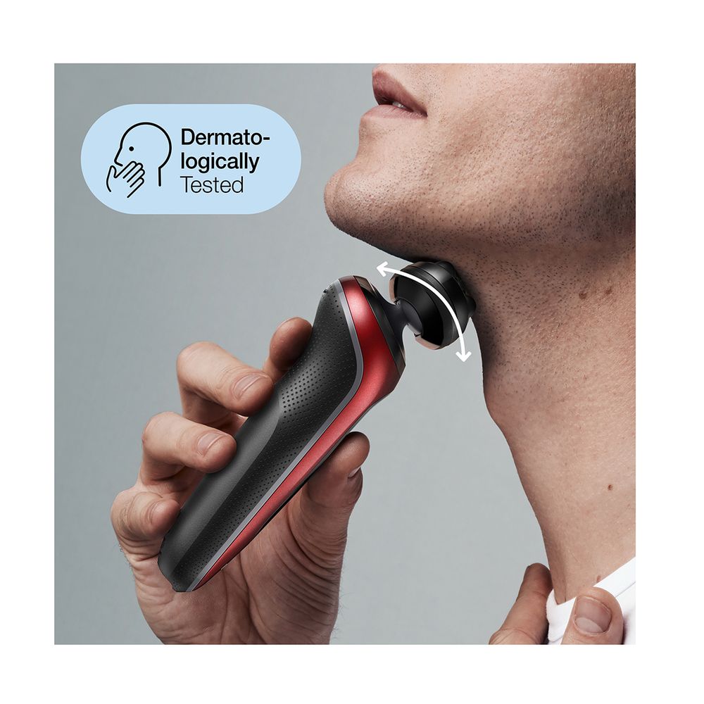 Η ξυριστική μηχανή 60-R1200s Series 6 της Braun με 3 ευέλικτες λεπίδες που προσαρμόζονται στις καμπύλες του προσώπου σου και κινούμενη κεφαλή SensoFlex για μείωση της πίεσης του δέρματος, έχει σχεδιαστεί για να σου προσφέρει εύκολο και άνετο ξύρισμα. Έχει εργονομική λαβή και σύστημα EasyClean για εύκολο και γρήγορο καθαρισμό, χωρίς να αφαιρείται η κεφαλή. Είναι 100% αδιάβροχη για χρήση Wet&Dry και περιλαμβάνει κόπτη ακριβείας, που είναι ιδανικός για περιποίηση σε μουστάκι και φαβορίτες.
