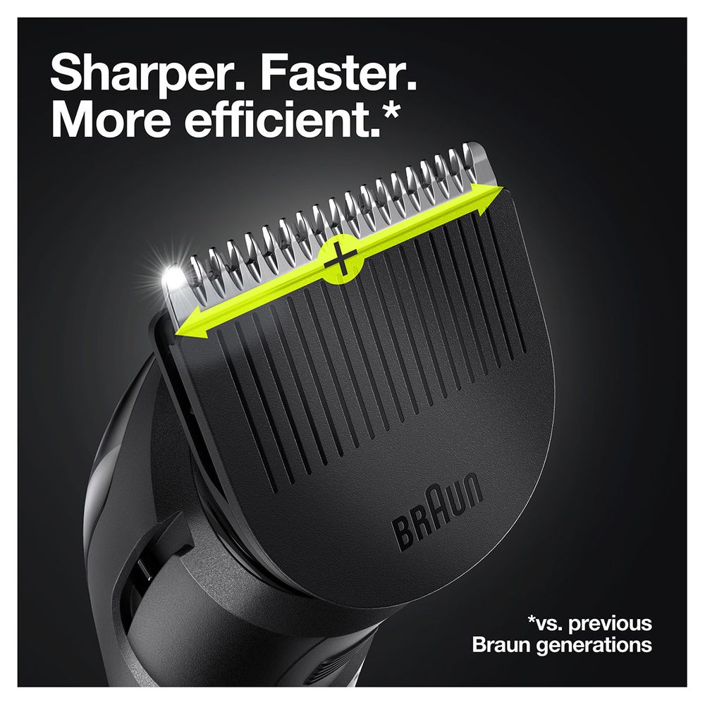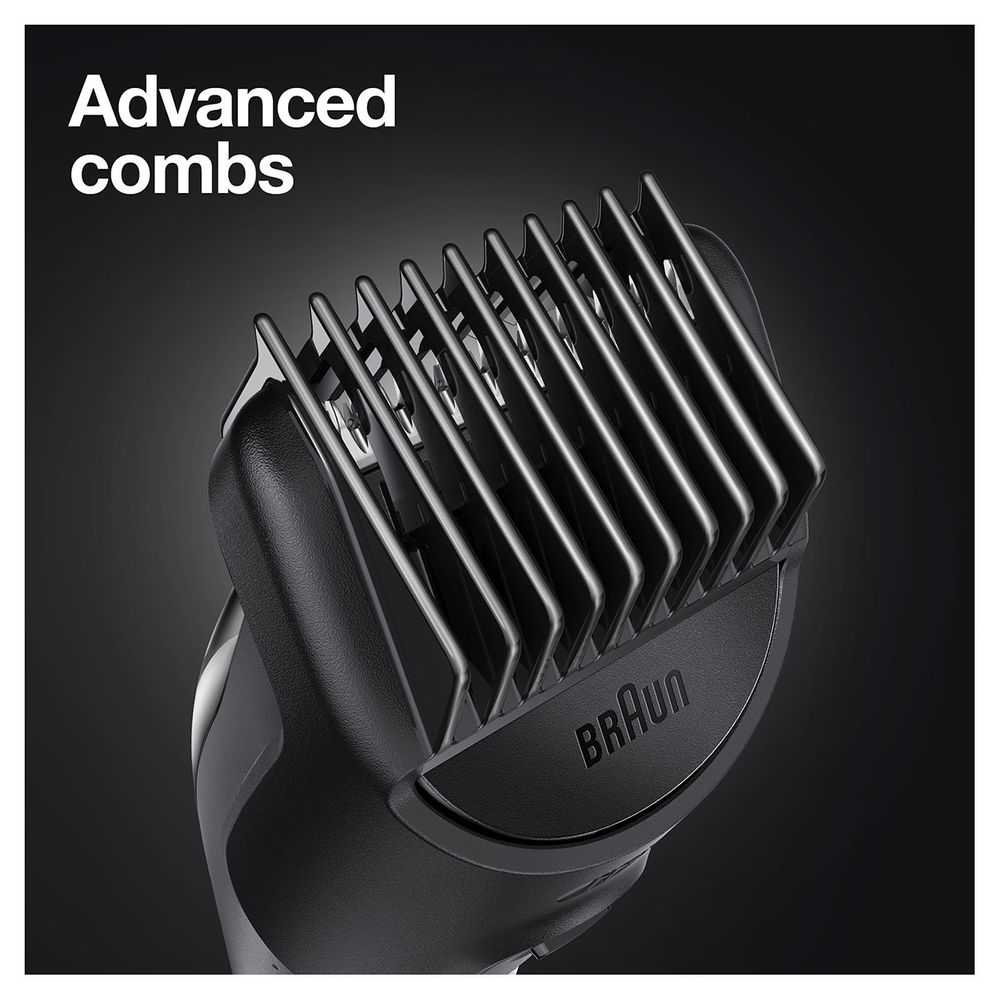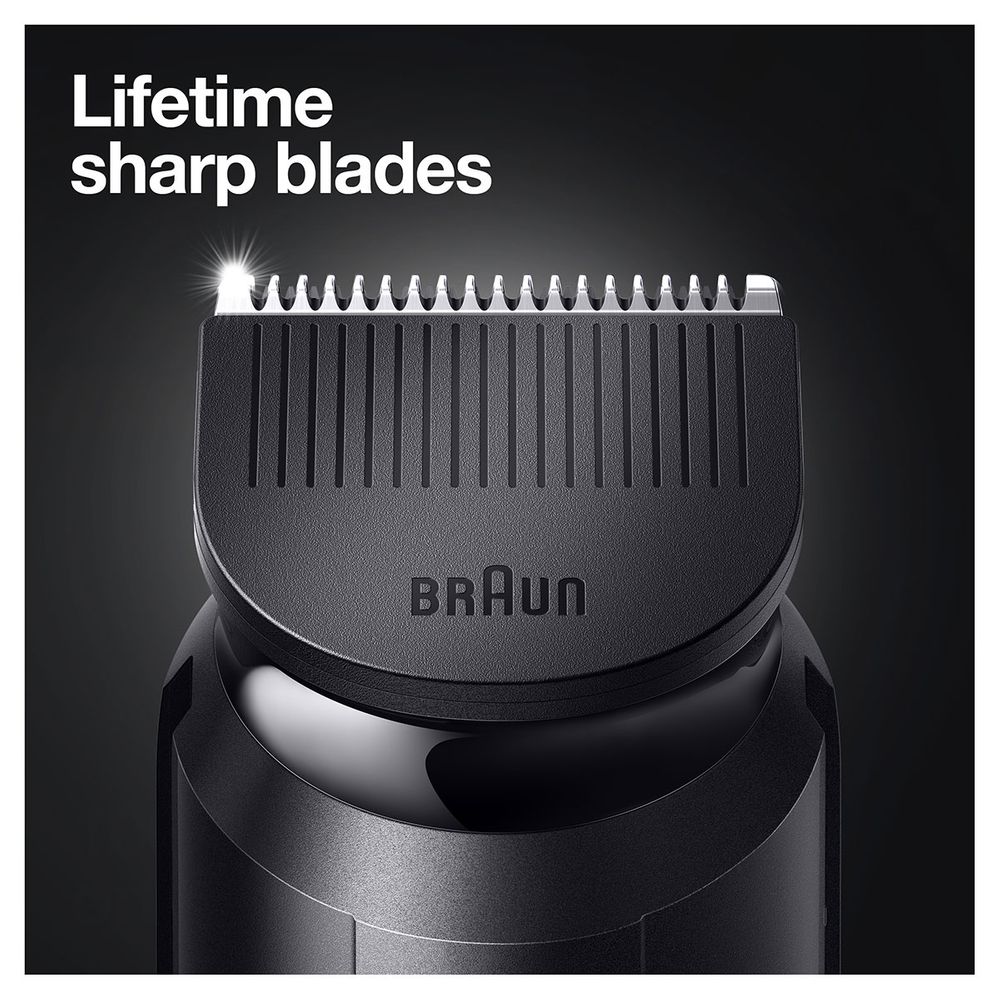 Η ανδρική κουρευτική μηχανή Braun MGK5380 και το κιτ περιποίησης σώματος κουρεύει οποιοδήποτε μήκος μαλλιών. Από τα γένια, το πρόσωπο και το αυτί, μέχρι το κούρεμα της μύτης, το κούρεμα σώματος και το κούρεμα.