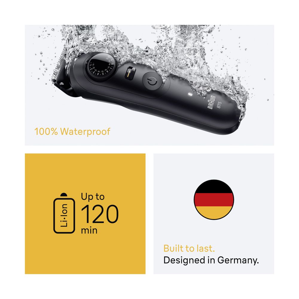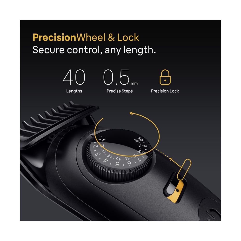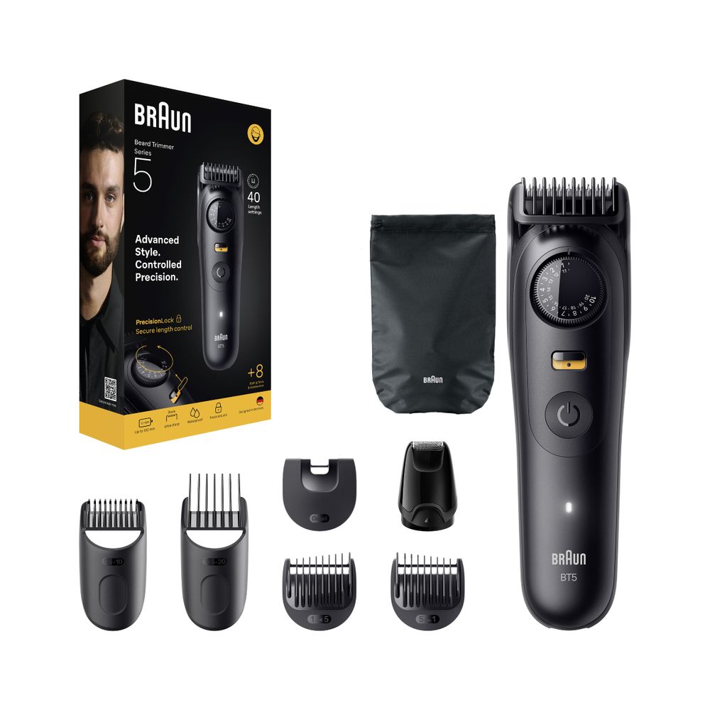 Με το Braun BT5560, έχεις απόλυτο έλεγχο του στιλ σου. Οι εξαιρετικά κοφτερές μεταλλικές λεπίδες κόβουν τις τρίχες χωρίς να τις τραβούν, προσφέροντας ομοιόμορφο κόψιμο ακόμη και στις δυσπρόσιτες περιοχές. Με 40 ρυθμίσεις μήκους κοπής από 0,5mm έως 20mm και κλείδωμα ρύθμισης, μπορείς να προσαρμόσεις το μήκος της γενειάδας σου με ακρίβεια. Η μπαταρία λιθίου προσφέρει 120 λεπτά αυτονομίας και πλήρη φόρτιση σε 90 λεπτά, ενώ η γρήγορη φόρτιση 5 λεπτών είναι ιδανική για ένα γρήγορο ξύρισμα.
