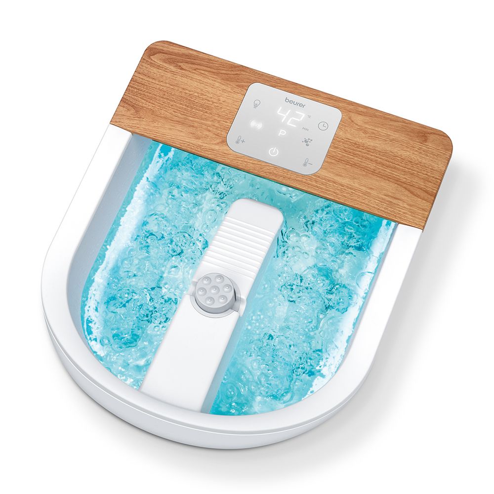 Το Υδρομασάζ Ποδιών Beurer FB 65 σου χαρίζει χαλαρωτικό μασάζ με φυσαλίδες και δονήσεις με υψηλή θέρμανση νερού σε 8 στάδια (34-48 °C). Εχει προκαθορισμένα προγράμματα και χειροκίνητες ρυθμίσεις για μια εύκολη και προσωποποιημένη χαλάρωση μασάζ, με εξαιρετικά φαρδιά ρολά για χαλαρό μασάζ στο κάτω μέρος του ποδιού.