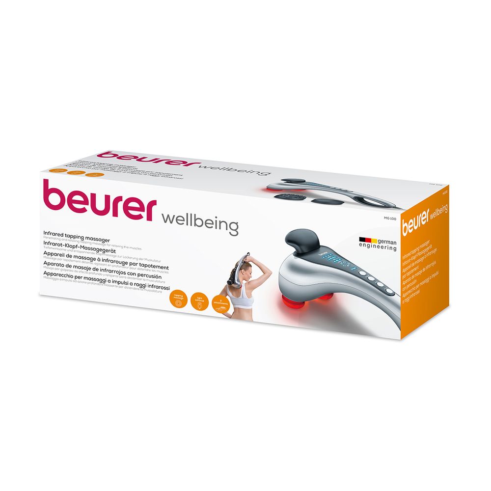 Συσκευή μασάζ Beurer MG 100 Γερμανικής τεχνολογίας με 2 θερμαινόμενες κεφαλές υπερύθρων, 4 προγράμματα μασάζ και 5 επίπεδα έντασης για αποτελεσματικό θεραπευτικό μασάζ.