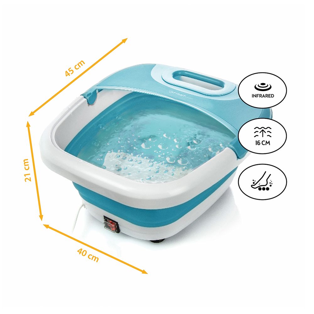Χάρισε στον εαυτό σου την πολυτέλεια του καθημερινού υδρομασάζ με το μπλε υδρομασάζ ποδιών FA-8116-2-BL! Με ισχύ 450W και αναδιπλούμενο σχεδιασμό για εύκολη αποθήκευση, σου προσφέρει χαλάρωση και ανακούφιση χειμώνα-καλοκαίρι. Ζεσταίνει το νερό στους 40-45°C και διαθέτει 3 προγράμματα: φυσαλίδες και δόνηση για τις ζεστές μέρες, ζεστό νερό και υπέρυθρες για τις κρύες και έναν συνδυασμό για την απόλυτη χαλάρωση. Πρόσθεσε αιθέρια έλαια ή άλατα για μεγαλύτερη αποτελεσματικότητα.