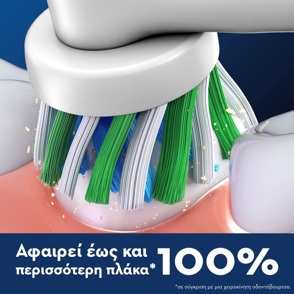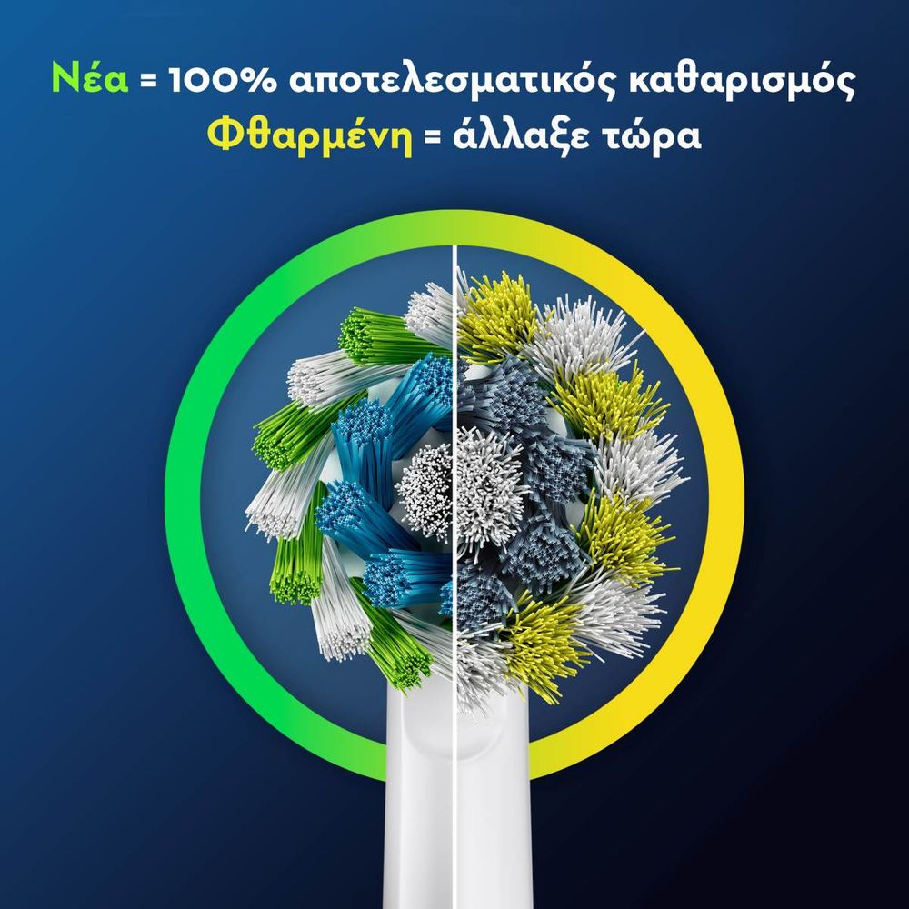 Καθάρισε αποτελεσματικά κάθε γωνία των δοντιών σου και φρόντισε τα ούλα σου με τις κεφαλές Oral-B Cross Action Pro. Με πάνω από 2.200 ίνες σε γωνία 16°, απομακρύνεις έως και 100% περισσότερη βακτηριακή πλάκα σε σχέση με μια χειροκίνητη οδοντόβουρτσα. Οι ίνες σχήματος Χ φτάνουν βαθιά, ενώ η ένδειξη φθοράς σου δείχνει πότε να τις αλλάξεις. Ταιριάζουν σε όλες τις ηλεκτρικές Oral-B, εκτός Pulsonic & iO.