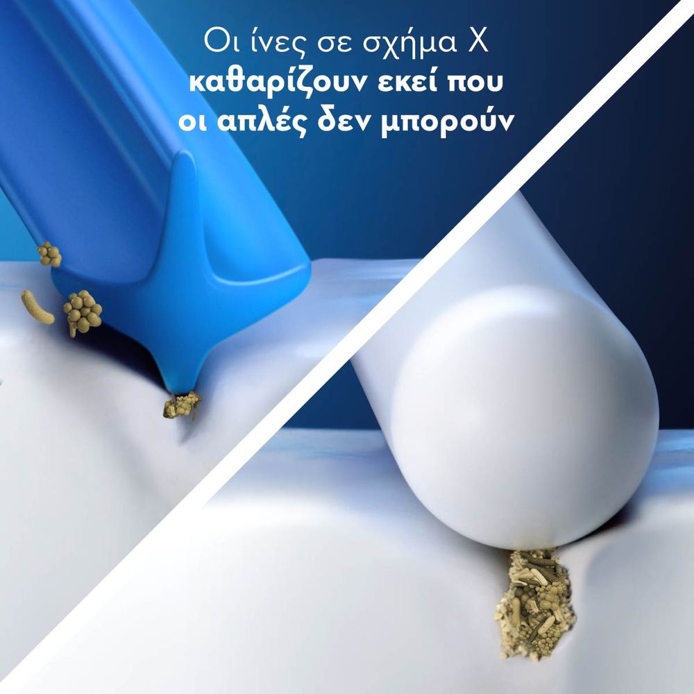 Νέες ίνες σχήματος Χ που καθαρίζουν περιοχές που οι στρογγυλές ίνες δε μπορούν να φτάσουν.