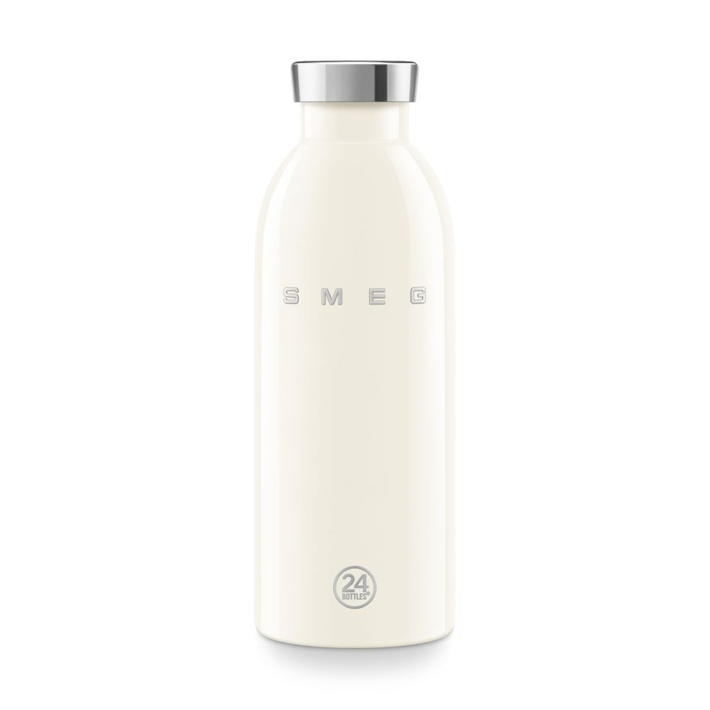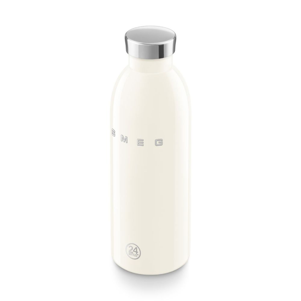 Το Clima Bottle Smeg x 24Bottles χωράει 500 ml και διατηρεί τα ποτά κρύα έως 24 ώρες και ζεστά έως 12, χάρη στο διπλό τοίχωμα από ανοξείδωτο ατσάλι 18/8. Είναι 100% ασφαλές, χωρίς BPA, BPS, PFAS και PES ή επιβλαβείς ουσίες, αεροστεγές, χωρίς συμπύκνωση και κατάλληλο για όλα τα είδη ποτών χωρίς αλλοίωση γεύσης.