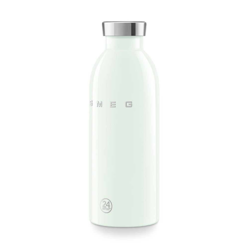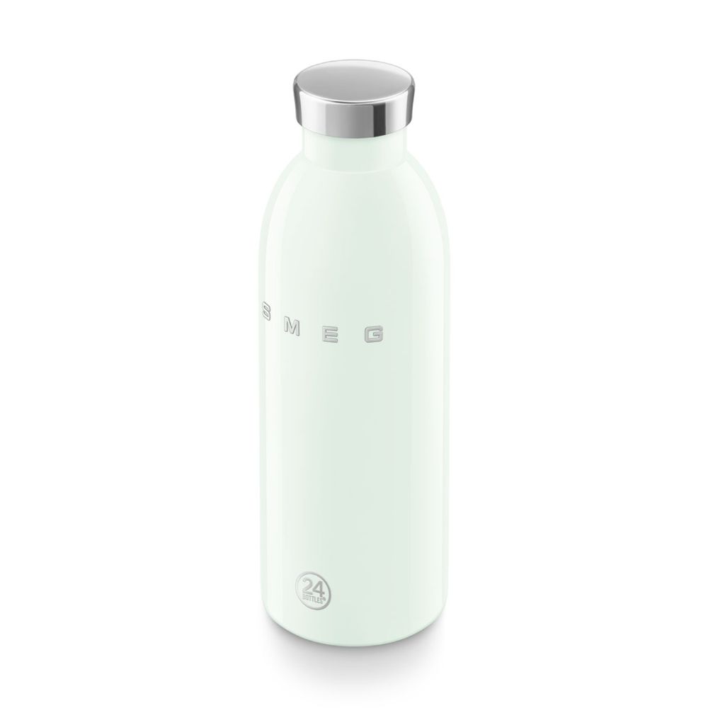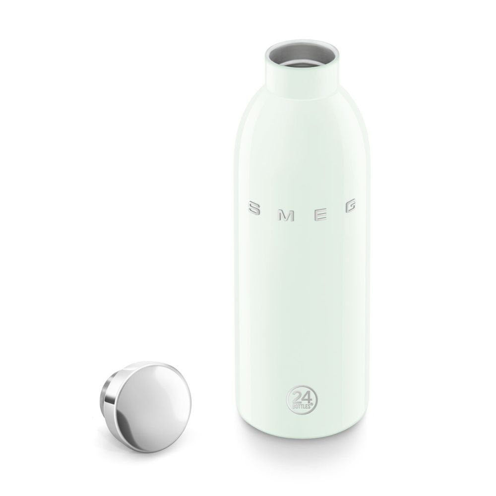 Το Clima Bottle Smeg x 24Bottles χωράει 500 ml και διατηρεί τα ποτά κρύα έως 24 ώρες και ζεστά έως 12, χάρη στο διπλό τοίχωμα από ανοξείδωτο ατσάλι 18/8. Είναι 100% ασφαλές, χωρίς BPA, BPS, PFAS και PES ή επιβλαβείς ουσίες, αεροστεγές, χωρίς συμπύκνωση και κατάλληλο για όλα τα είδη ποτών χωρίς αλλοίωση γεύσης.