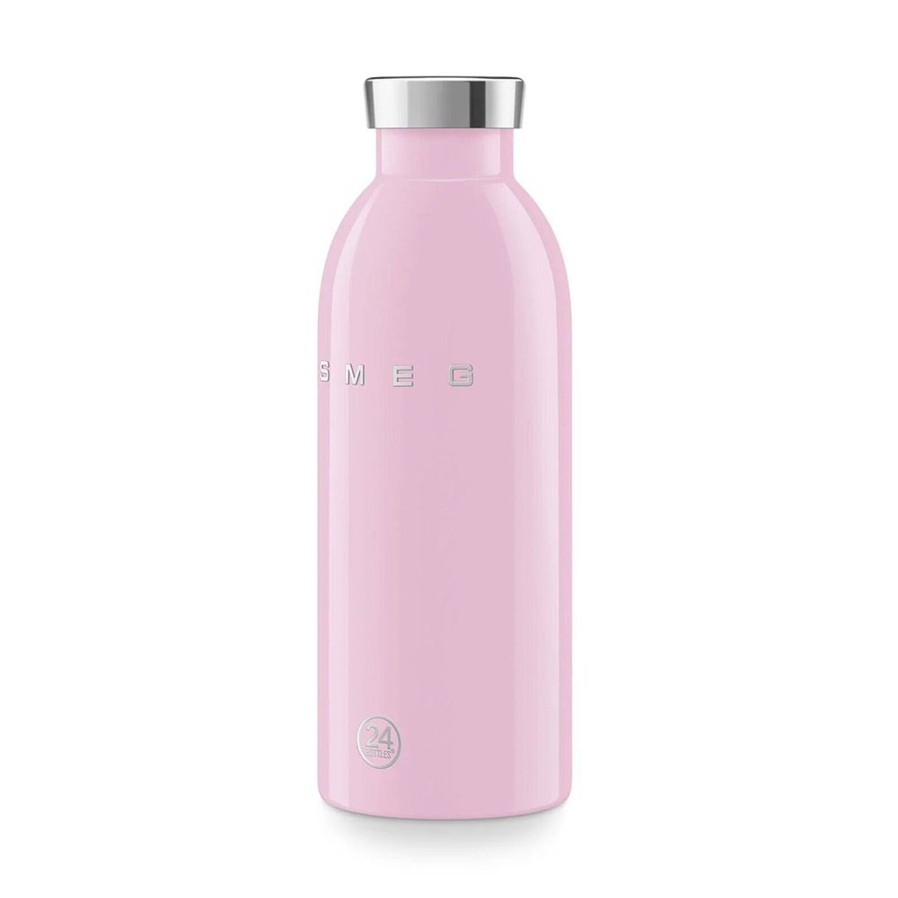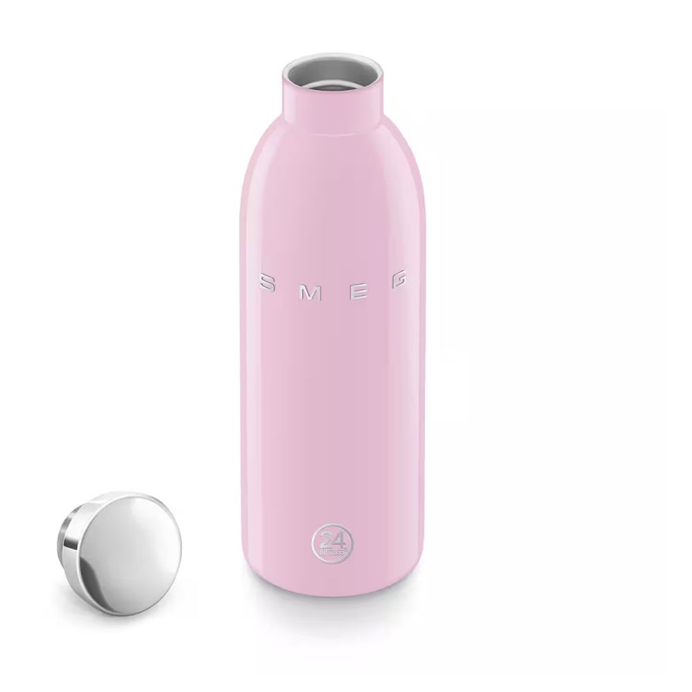 Το Clima Bottle Smeg x 24Bottles χωράει 500 ml και διατηρεί τα ποτά κρύα έως 24 ώρες και ζεστά έως 12, χάρη στο διπλό τοίχωμα από ανοξείδωτο ατσάλι 18/8. Είναι 100% ασφαλές, χωρίς BPA, BPS, PFAS και PES ή επιβλαβείς ουσίες, αεροστεγές, χωρίς συμπύκνωση και κατάλληλο για όλα τα είδη ποτών χωρίς αλλοίωση γεύσης.