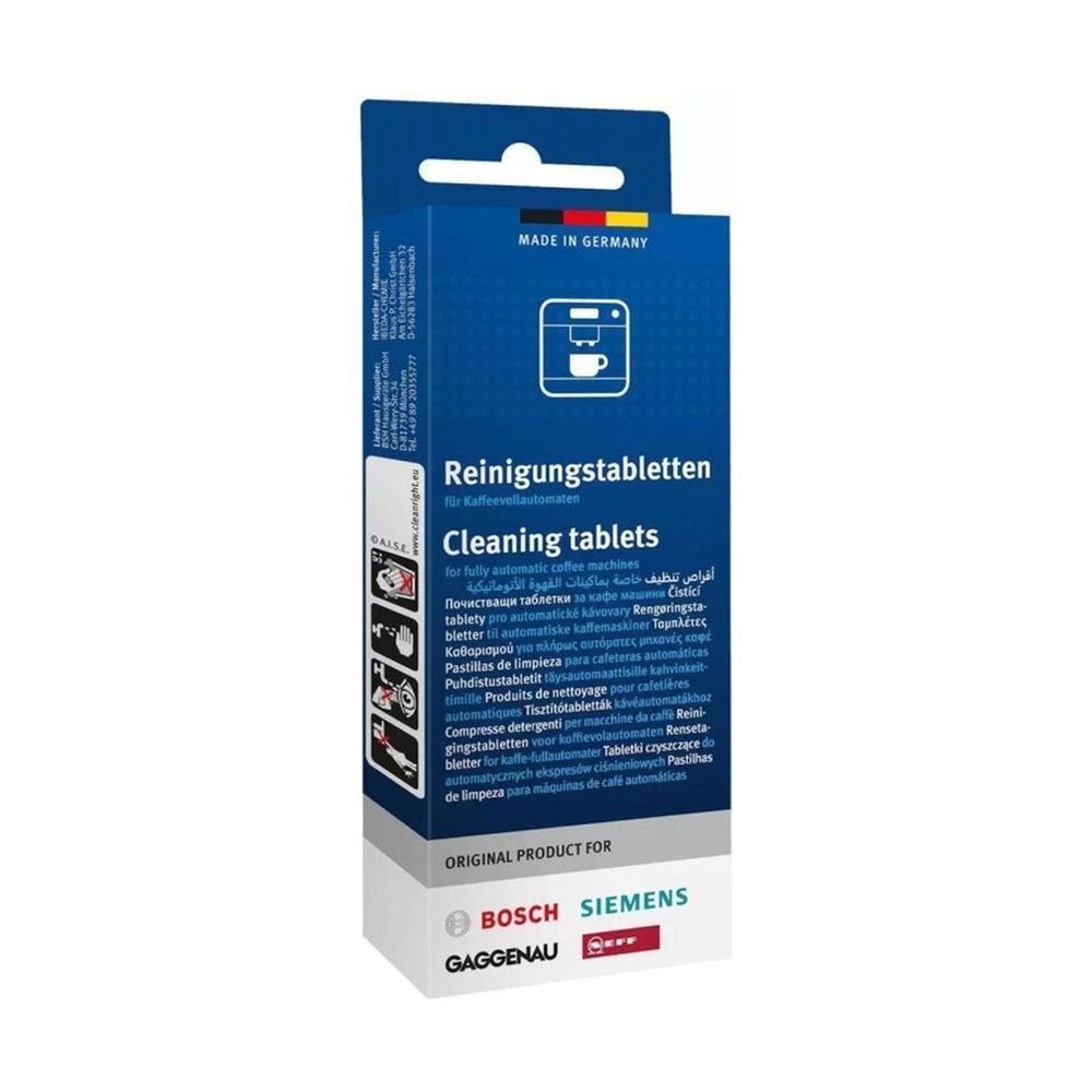 Αναβράζουσες ταμπλέτες καθαρισμού για αυτόματες μηχανές καφέ, καφετιέρες και βραστήρες. Απομακρύνουν άλατα και υπολείμματα καφέ, αυξάνοντας την απόδοση και τη διάρκεια ζωής της συσκευής σου. Το γνήσιο καθαριστικό έχει δοκιμαστεί και συνιστάται από τους κατασκευαστές Bosch και Siemens. Είναι πιστοποιημένο προϊόν, κατάλληλο για την καφετιέρα σου. Η συσκευασία περιέχει 10 ταμπλέτες, προσφέροντας 10 δόσεις καθαρισμού για τη μηχανή σου.