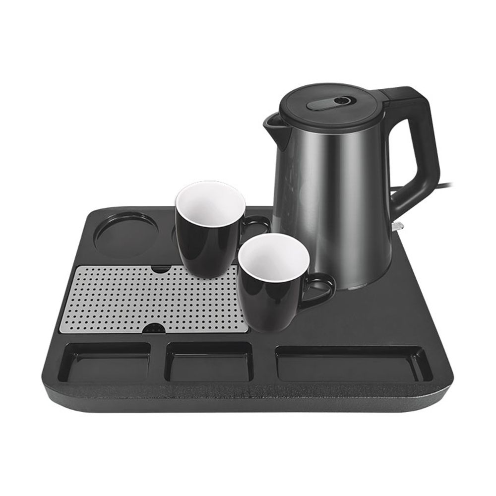 Δίσκος καλωσορίσματος με μαύρο βραστήρα 1.0L, 1650W και 2 κούπες. Πρόσφερε μια ευχάριστη και φιλόξενη υποδοχή στους επισκέπτες σου με τον δίσκο καλωσορίσματος Life Welcome Onyx. Αποτελείται από κομψό δίσκο διαστάσεων 23.4 x 35.7cm, με μοντέρνο design και πρακτικές θήκες για sticks καφέ/ζάχαρη, φακελάκια τσάι κ.ά, μαύρο βραστήρα 1.0L και δύο κεραμικές κούπες.