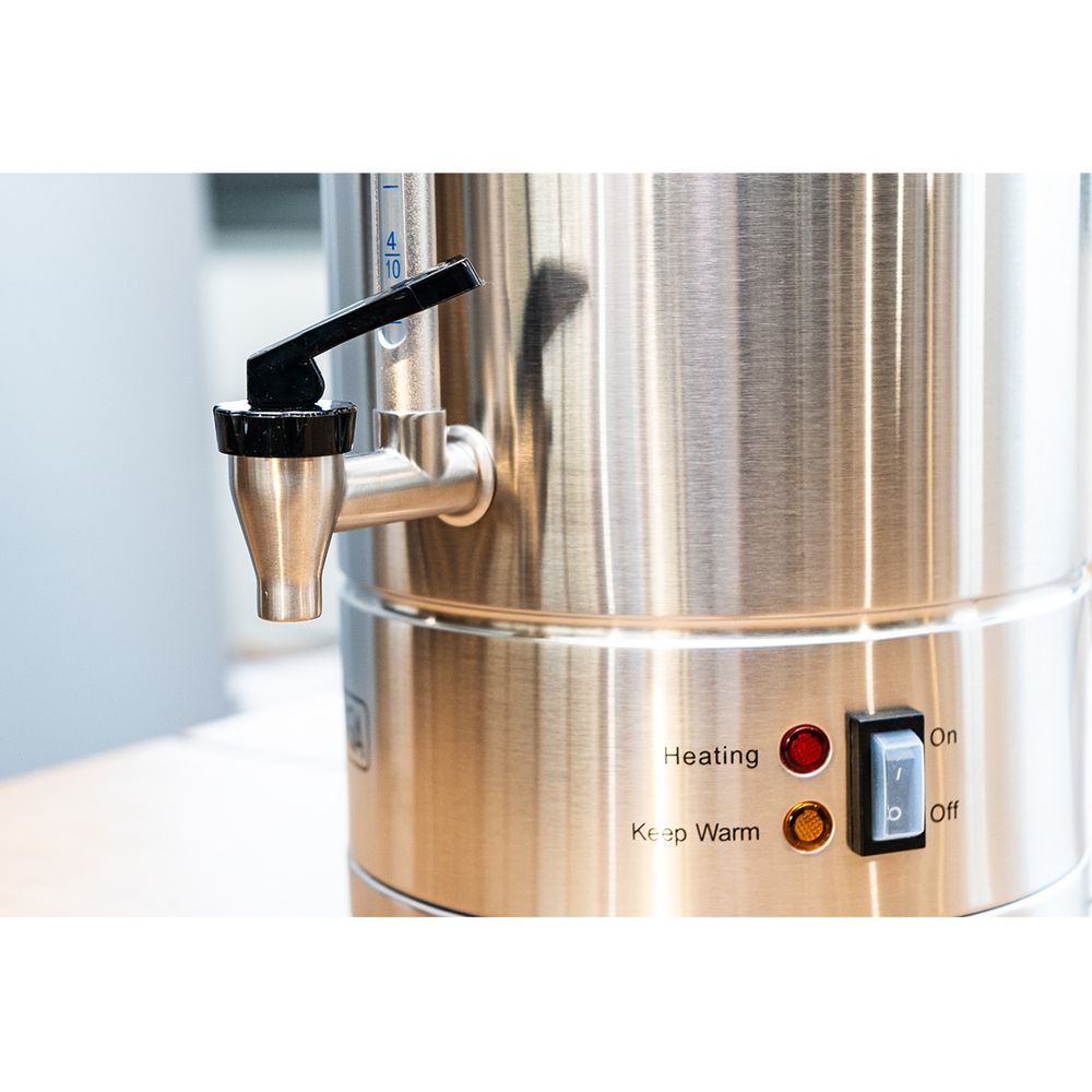 Ο βραστήρας καφέ Belogia PL 1-16LT συνδυάζει μοντέρνο σχεδιασμό με υψηλή λειτουργικότητα και ισχύ 1650W. Διαθέτει ανοξείδωτο δοχείο και καλάθι φιλτραρίσματος, διπλά τοιχώματα για καλύτερη θερμομόνωση και υαλοδείκτη ποσότητας. Η κάνουλα σερβιρίσματος είναι από χρωμιομένο μπρούντζο, ενώ τα δύο συστήματα θέρμανσης εξασφαλίζουν ιδανική παρασκευή (90–98°C) και διατήρηση του καφέ στους 88°C. Με ένδειξη λειτουργίας και διπλή προστασία υπερφόρτωσης.