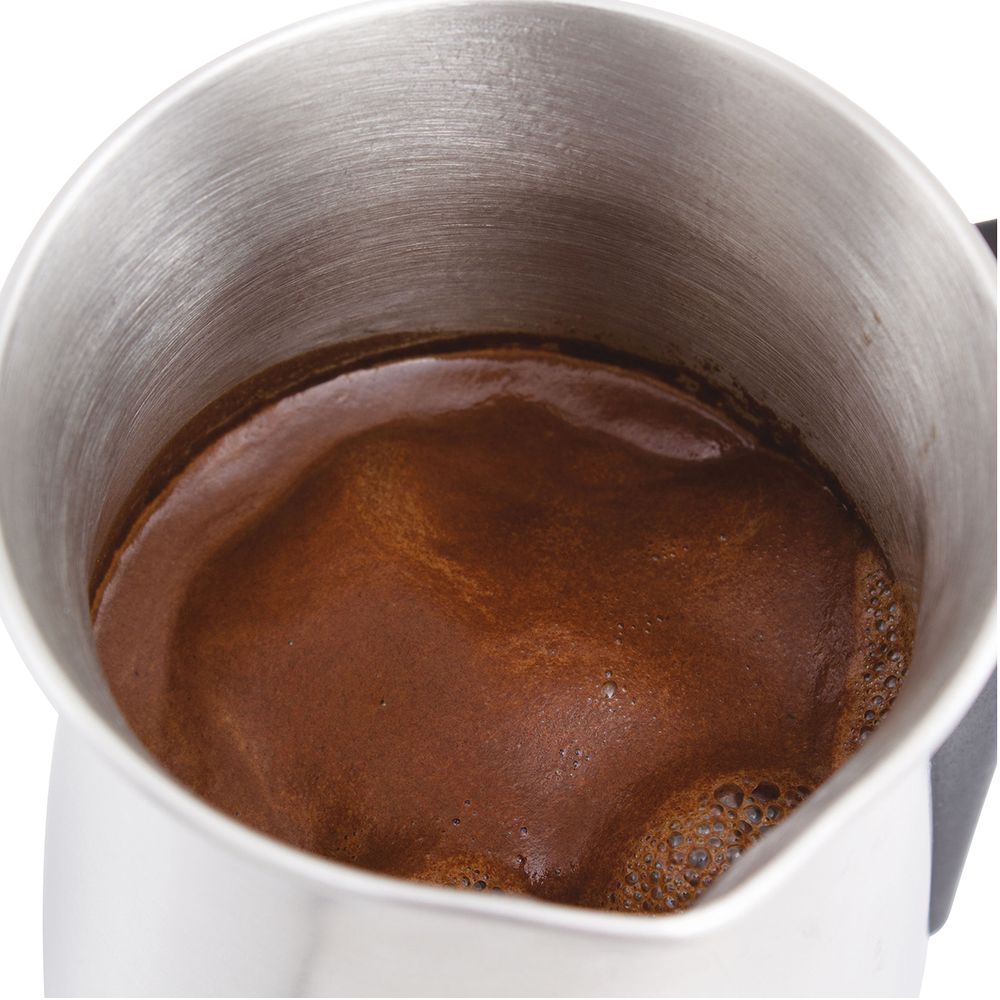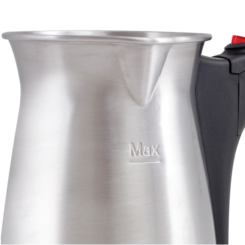 Κατασκευή και εστία θέρμανσης από ανοξείδωτο ατσάλι, μέγιστη χωρητικότητα 400 ml (6 μικρά φλιτζάνια ή 3 κούπες), λειτουργία αποφυγής υπερχείλισης με διπλό έλεγχο θερμοκρασίας, περιστρεφόμενη αποσπώμενη βάση 360°, διακόπτης με λυχνία λειτουργίας On/Off, λειτουργία διατήρησης θερμοκρασίας, προστασία κατά του ξηρού βρασμού.