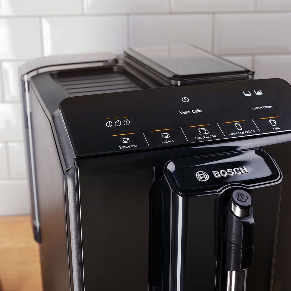 Πλήρως αυτόματη καφετιέρα espresso Bosch με ισχύ 1300W, πίεση 15 bar, SensoFlow System για εγγυημένα τέλειο άρωμα καφέ, φίλτρο Brita, τεχνολογία MilkMagic Pro, κεραμικό μύλο και αυτόματη λειτουργία καθαρισμού Calc’n Clean.