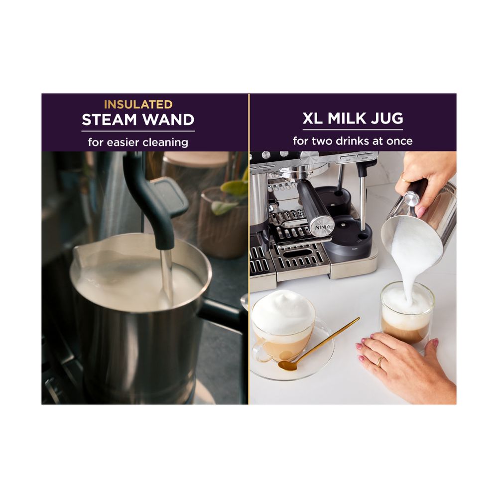 Απόλαυσε επαγγελματικό καφέ στο σπίτι με τη Ninja ES701E. Με ισχύ 1650W και χωρητικότητα 2L, διαθέτει ενσωματωμένο μύλο, δοχείο γάλακτος και σύστημα αφρογαλατιέρας για τέλειο cappuccino ή latte. Ο σχεδιασμός από ανοξείδωτο ατσάλι σε μαύρο και ασημί προσφέρει κομψότητα, ενώ η αυτόματη απενεργοποίηση και η λειτουργία αυτοκαθαρισμού κάνουν τη χρήση της εύκολη και ασφαλή.