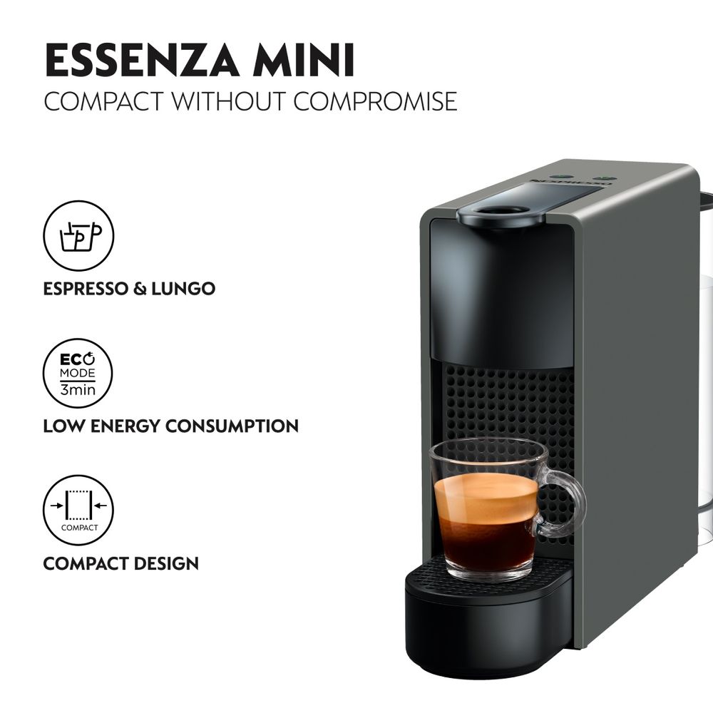 Απόλαυσε μοναδική απόδοση σε μικρό μέγεθος με τη μίνι μηχανή εσπρέσο Nespresso Essenza Mini, για τέλεια εμπειρία εσπρέσο με απόλυτη άνεση και εξαιρετική ποιότητα. Μια νέα γενιά μίνι μηχανών καφέ που σου προσφέρει πρακτικό, εύκολο χειρισμό και κομψό, μοντέρνο σχεδιασμό που ταιριάζει άψογα σε κάθε κουζίνα. Ετοιμάσου για μοναδική γεύση σε κάθε φλιτζάνι, είτε προτιμάς εσπρέσο είτε lungo.