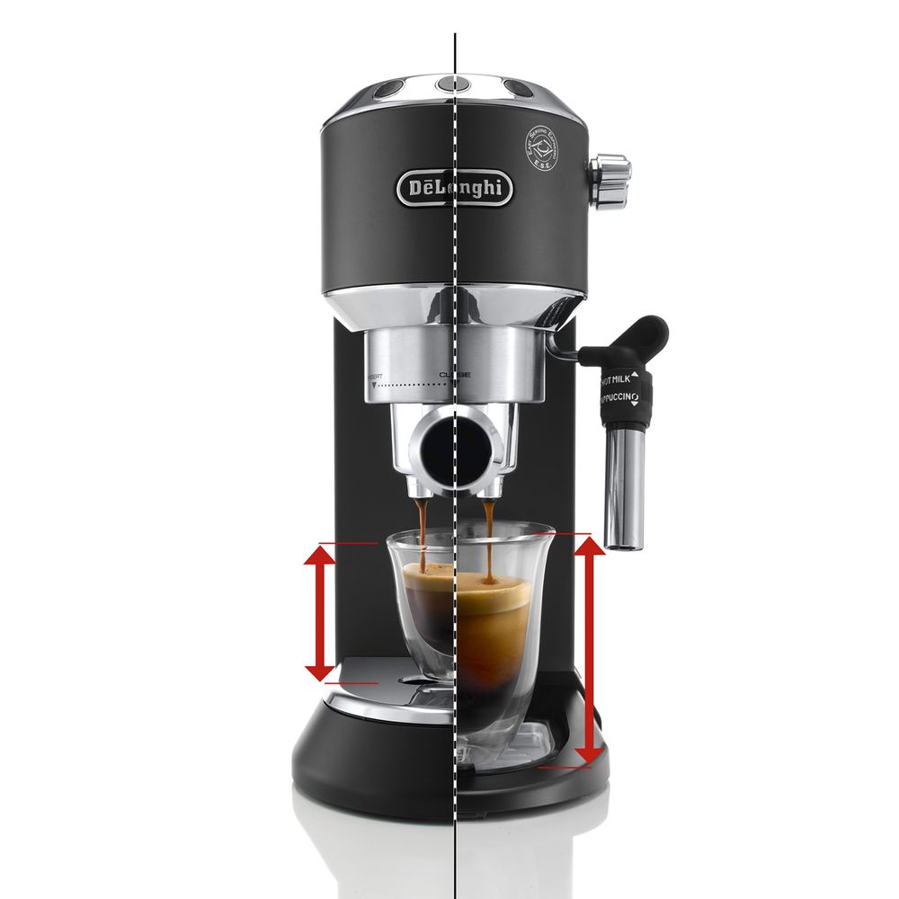 Μηχανή Espresso Delonghi Dedica EC685.BK με ισχύ 1350W, 15 bar πίεση, γρήγορη προθέρμανση σε 40'' και Cappuccino system που συνδυάζει ατμό, αέρα και γάλα για τέλειο cappuccino.