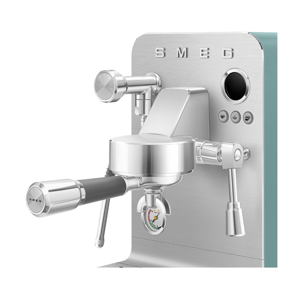 Ξεκίνα κάθε πρωί σαν αυθεντικός barista με την καφετιέρα Smeg. Απόλαυσε ιταλικό espresso με επαγγελματική ακρίβεια, χάρη στην αντλία 15 bar, το μανόμετρο και το τριπλό σύστημα thermoblock. Δημιούργησε τέλειο αφρό με το ανοξείδωτο ραβδί ατμού και φτιάξε τον καφέ όπως ακριβώς σου αρέσει.
