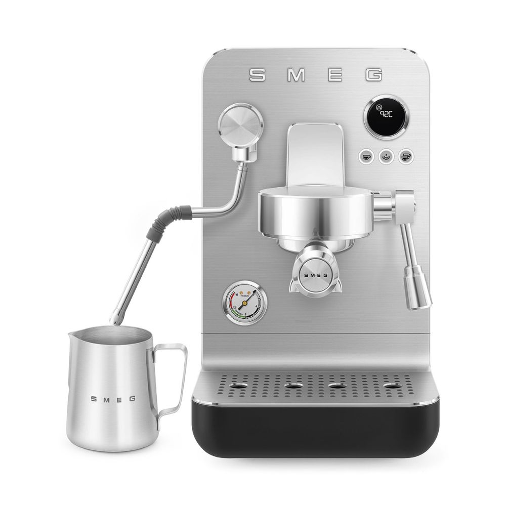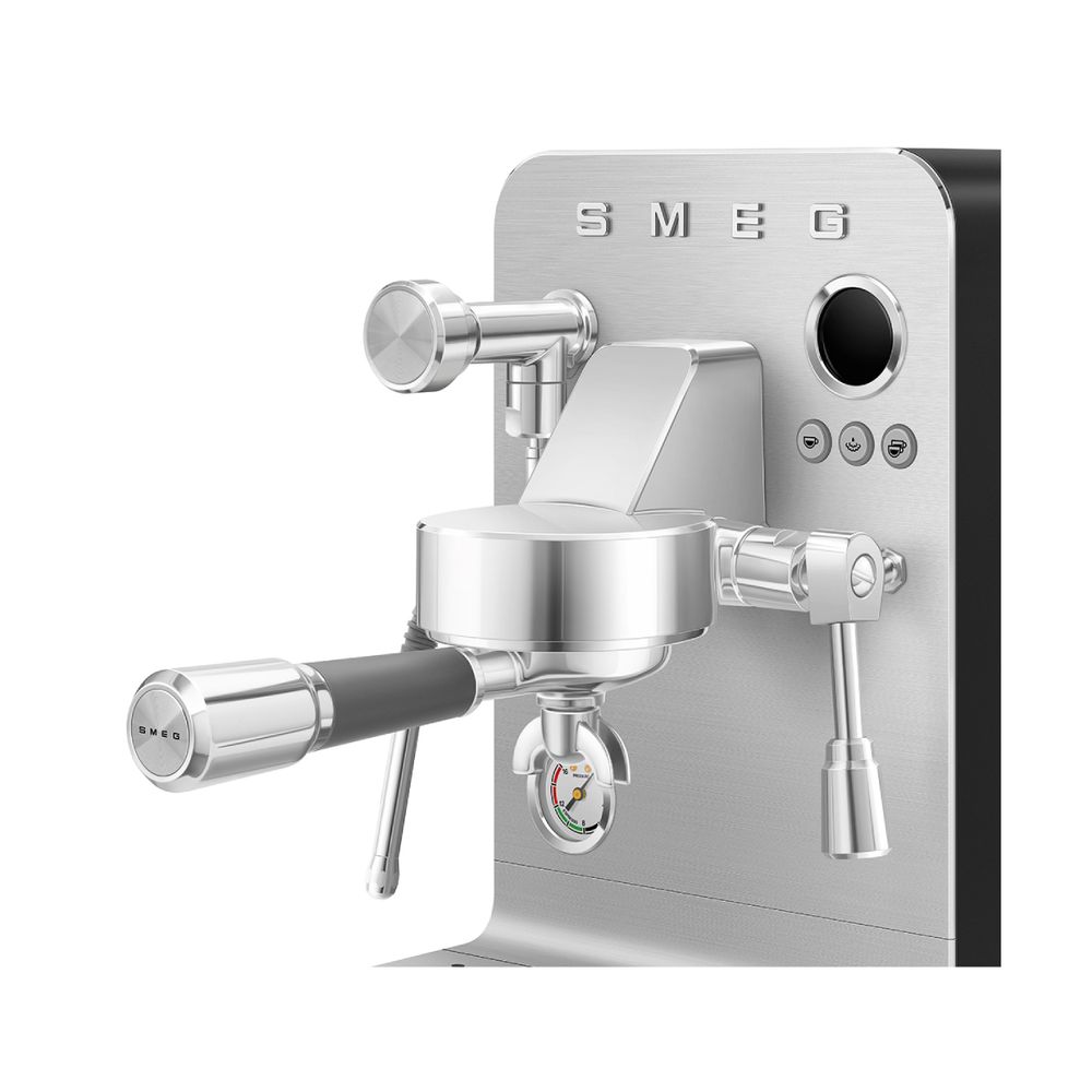 Ξεκίνα κάθε πρωί σαν αυθεντικός barista με την καφετιέρα Smeg. Απόλαυσε ιταλικό espresso με επαγγελματική ακρίβεια, χάρη στην αντλία 15 bar, το μανόμετρο και το τριπλό σύστημα thermoblock. Δημιούργησε τέλειο αφρό με το ανοξείδωτο ραβδί ατμού και φτιάξε τον καφέ όπως ακριβώς σου αρέσει.