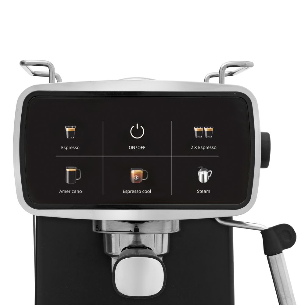 Αντλία πίεσης 20 Bar Ημιαυτόματη μηχανή espresso Με τεχνολογία COLD BREW για παρασκευή κρύου καφέ Μεγάλη touch οθόνη Αποσπώμενο δοχείο νερού 1.5L Ακροφύσιο ατμού για αφρόγαλα με ρύθμιση ροής ατμού Inox επιφάνεια Δοχείο συλλογής υγρών