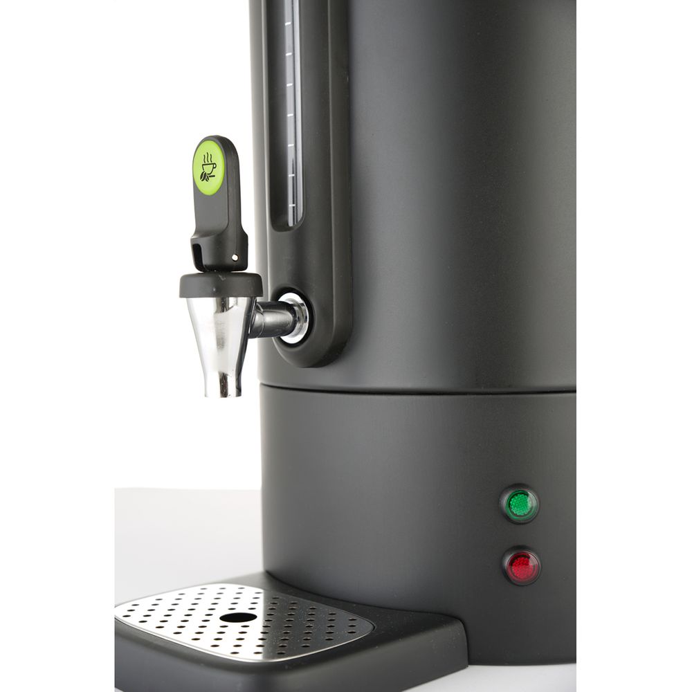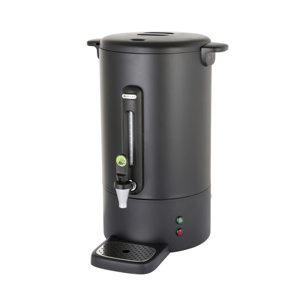 Καφετιέρα φίλτρου (Percolator) 13lt από την εταιρεία Hendi με σώμα από μαύρο ματ ανοξείδωτο ατσάλι μονού τοιχώματος, με κομψές λαβές και καπάκι από πολυπροπυλένιο. Μοναδικός σχεδιασμός βρύσης που δεν στάζει με ενσωματωμένο διαβαθμισμένο γυαλί. Ο δίσκος αποστράγγισης είναι μαγνητικός, μπορεί να αφαιρεθεί χωρίς να σηκωθεί ή να χυθεί.