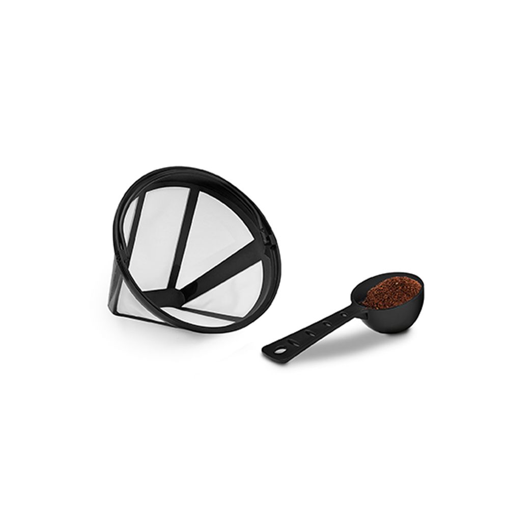 Μόνιμο αφαιρούμενο φίλτρο, πλάκα που απενεργοποιείται μετά από 30 λεπτά, Τεχνολογία Anti-drip, Ασφάλεια κατά της υπερθέρμανσης, Λυχνία λειτουργίας, Κουτάλι,δοσομετρητής
