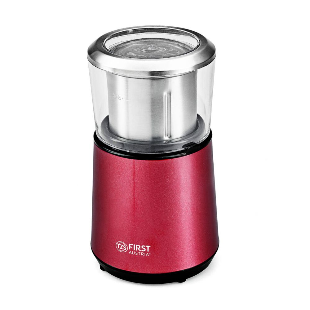 Μύλος άλεσης καφέ FA-5486-2-RE First Austria με χωρητικότητα 65g και ισχύ 200W για να έχεις φρεσκοκομμένο καφέ, μπαχαρικά, ξηρούς καρπούς, τσάι ή βότανα. Με 4 λεπίδες από ανοξείδωτο ατσάλι, σχεδιασμένος για λειτουργία με το ένα χέρι.