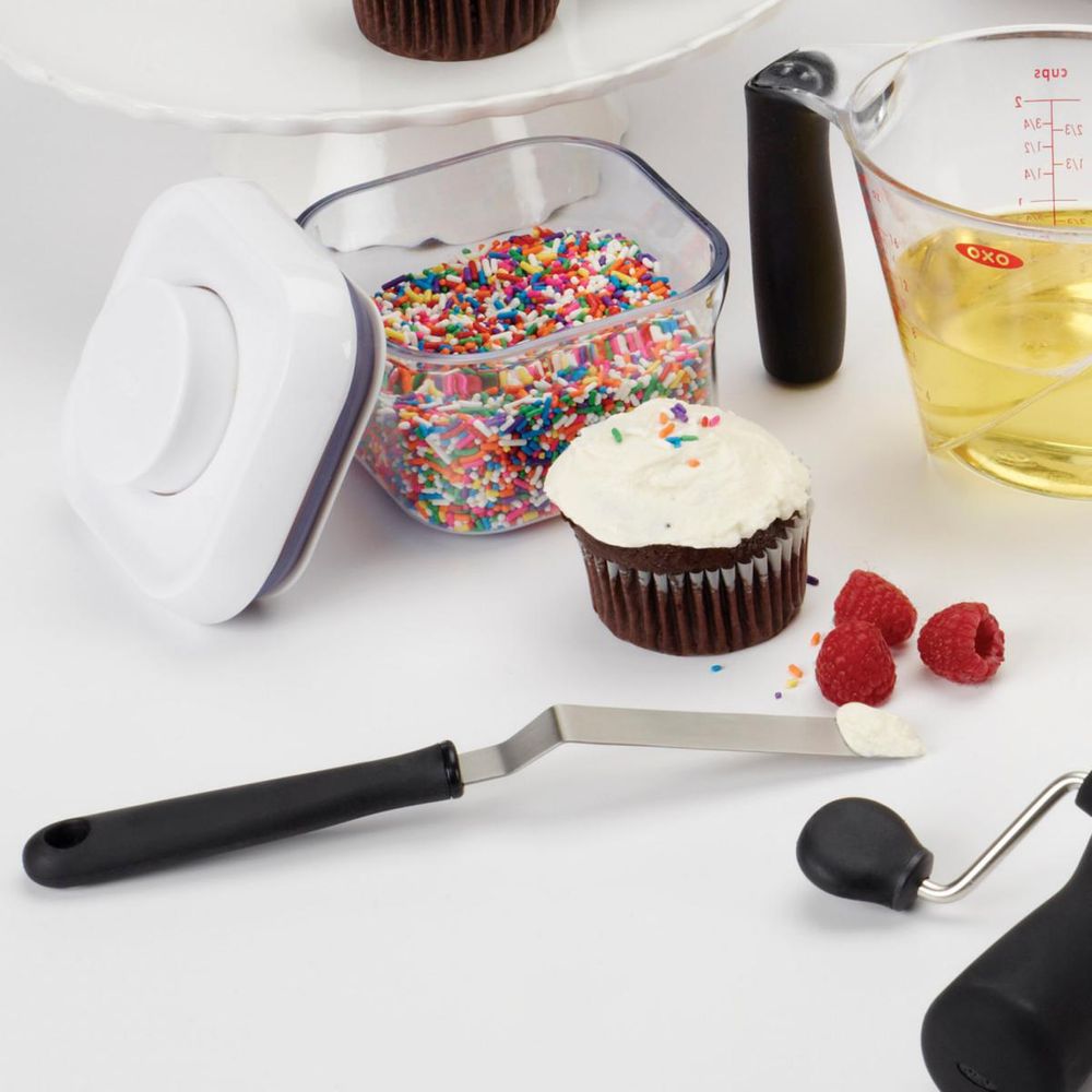 Η στιβαρή αλλά εύκαμπτη λεπίδα από ανοξείδωτο χάλυβα και οι λείες άκρες επιτρέπουν ομοιόμορφες στρώσεις για τα cupcakes σου και η μαλακή λαβή έχει άνετο κράτημα.