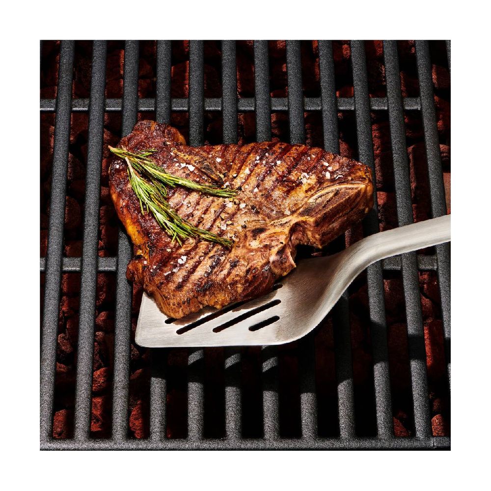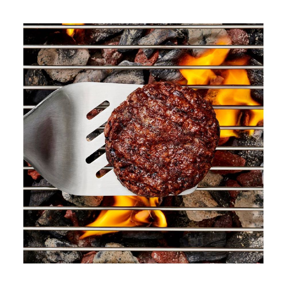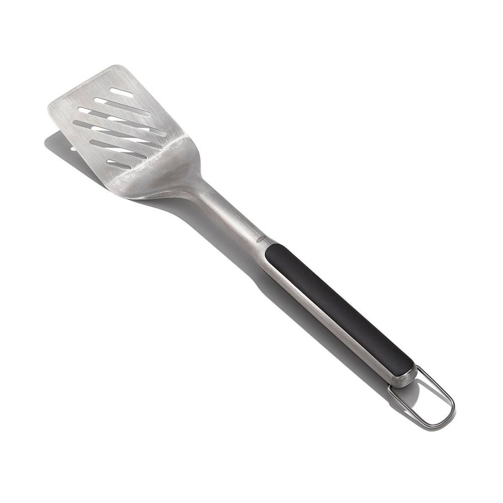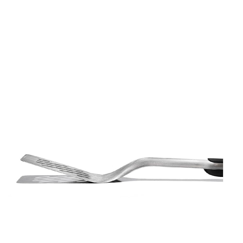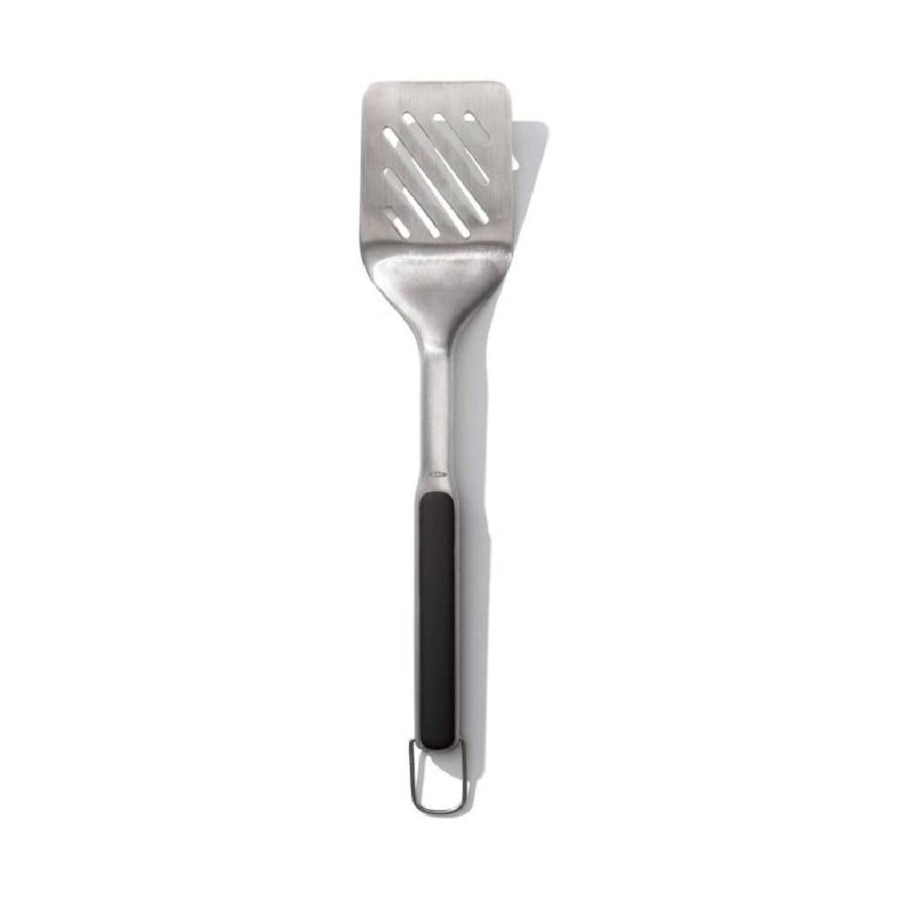 Σπάτουλα Oxo κατασκευασμένη από ανθεκτικό ανοξείδωτο ατσάλι. Διαθέτει φαρδιά και λοξή λαβή, ιδανική για να ολισθαίνει κάτω από τα μπιφτέκια και το φιλέτο κοτόπουλου. Επίσης, έχει αντιολισθητική λαβή για να μη φεύγει από τα χέρια σου και μπορεί να πλυθεί στο πλυντήριο πιάτων.