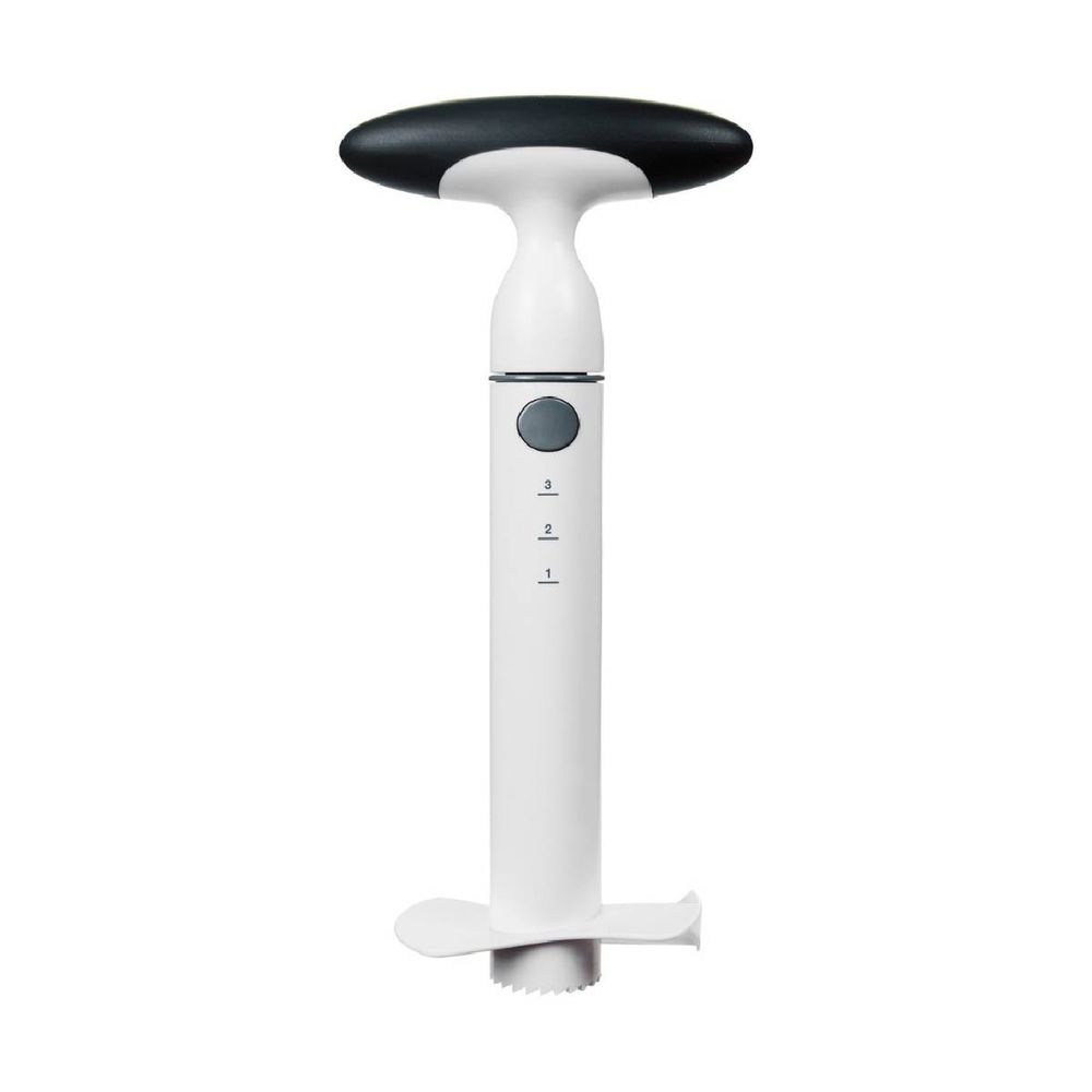 Εργάλειο κοπής ανανά Oxo. Κόψε τον ανανά εύκολα και γρήγορα σε φέτες χωρίς να διατρέχεις κίνδυνο τραυματισμού. Λειτουργεί σε όλα τα μεγέθη ανανά, διαθέτει αντιολισθητική λαβή, το ύψος ρυθμίζεται ανάλογα το μέγεθος του ανανά, αποθηκεύεται εύκολα και είναι ασφαλές για το πλυντήριο πιάτων.