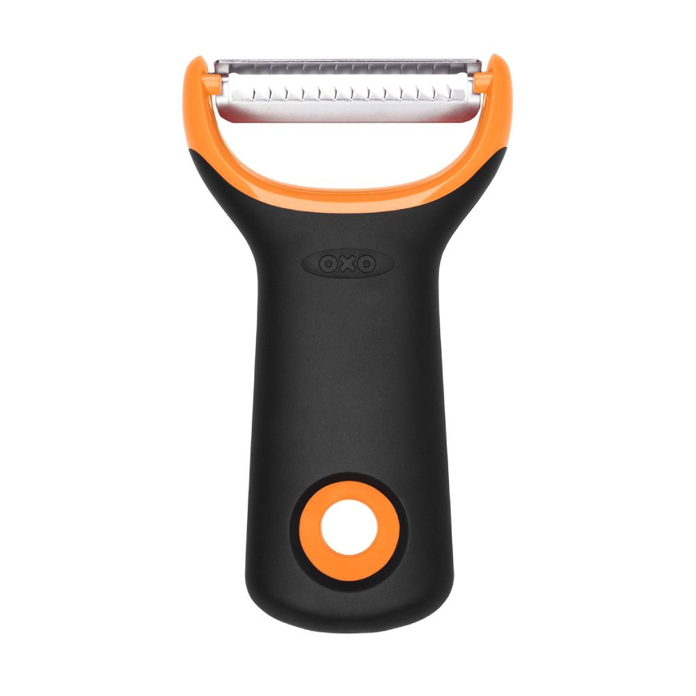 Το Oxo Good Grips Precision Julienne Peeler σου επιτρέπει να δημιουργείς ομοιόμορφες λωρίδες λαχανικών με ευκολία. Με αιχμηρές λεπίδες από Ιαπωνικό ανοξείδωτο ατσάλι και εργονομική αντιολισθητική λαβή, είναι ιδανικό για σαλάτες, γαρνιτούρες και πολλά άλλα. Είναι επίσης ασφαλές για το πλυντήριο πιάτων.