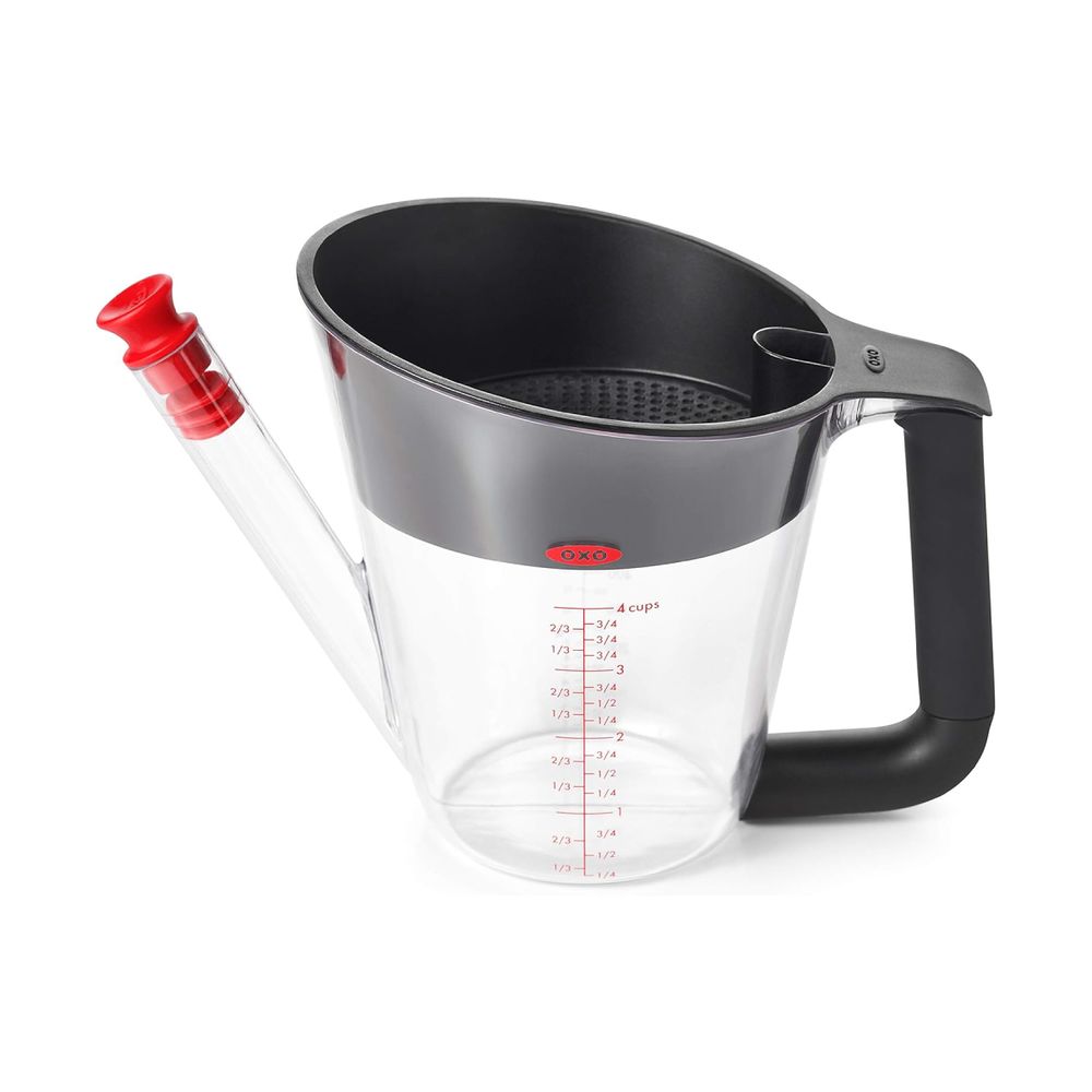 Ο διαχωριστής λίπους Oxo Good Grips 2 Cup είναι ιδανικός για να αφαιρείς το λίπος από ζωμούς και σάλτσες. Διαθέτει στόμιο που διαχωρίζει το λίπος από τα υγρά και εργονομική λαβή για άνετο κράτημα. Είναι κατασκευασμένος από ανθεκτικό γυαλί και είναι ασφαλής για το πλυντήριο πιάτων.