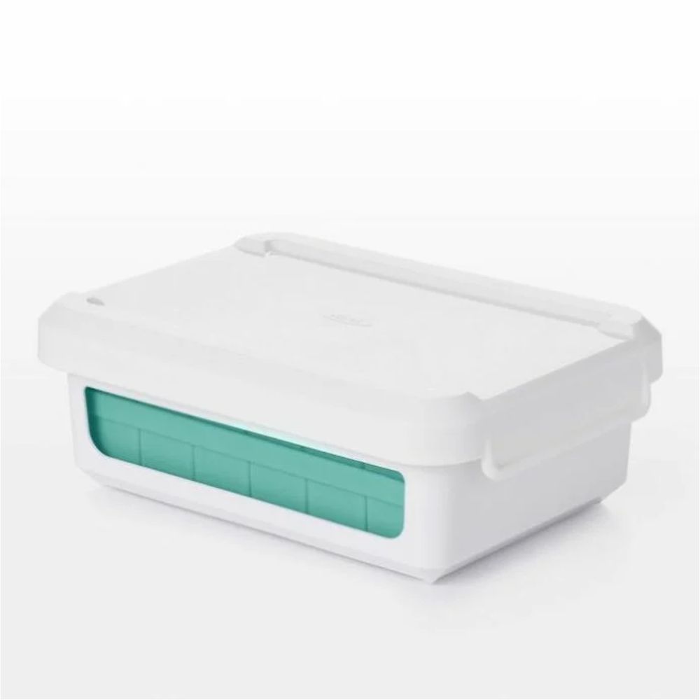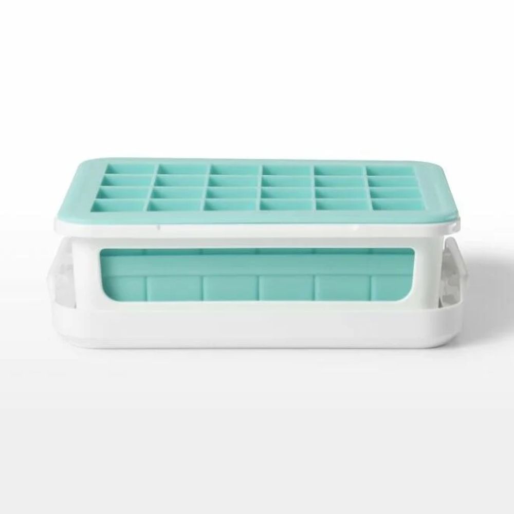 Η παγοθήκη μικρού πάγου Oxo διαθέτει δύο δίσκους που δημιουργούν συνολικά 48 μικρούς κύβους (7/8"). Το εύκαμπτο υλικό από σιλικόνη επιτρέπει εύκολη αφαίρεση των κύβων, ενώ το σταθερό πλαίσιο βοηθά στο γέμισμα και τη μεταφορά. Το κάλυμμα προστατεύει από οσμές και επιτρέπει τη στοίβαξη πολλών παγοθηκών. Είναι BPA-free και πλένεται στο πλυντήριο.
