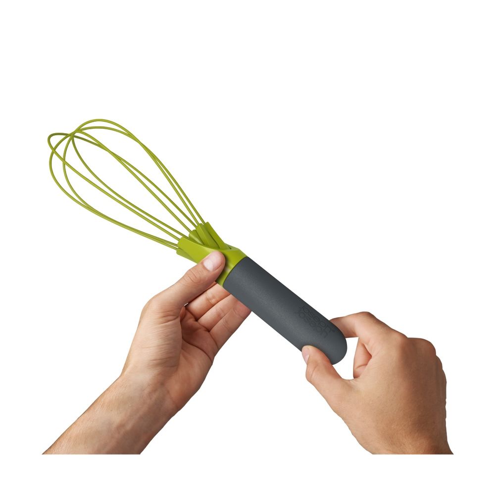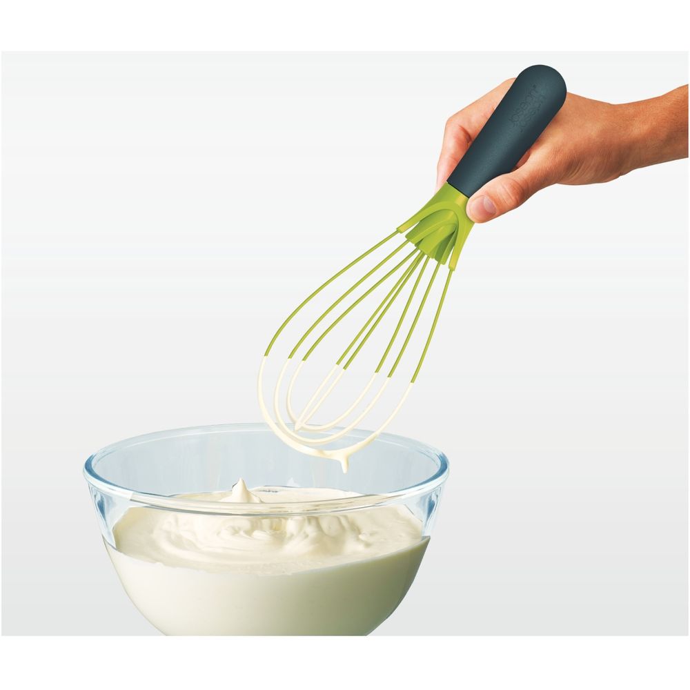 Ανακάλυψε τον Joseph Twist 2-in-1 Αναδευτήρα, το έξυπνο εργαλείο που με ένα απλό στρίψιμο μετατρέπεται από flat whisk σε balloon whisk, καλύπτοντας κάθε ανάγκη στο μαγείρεμα. Οι συρμάτινες επιστρώσεις σιλικόνης αντέχουν σε θερμοκρασίες έως 200°C και είναι ιδανικές για χρήση σε αντικολλητικά σκεύη. Ο καινοτόμος σχεδιασμός του διπλώνει για εύκολη και συμπαγή αποθήκευση. Πλένεται στο πλυντήριο πιάτων και είναι BPA-free για απόλυτη ασφάλεια.