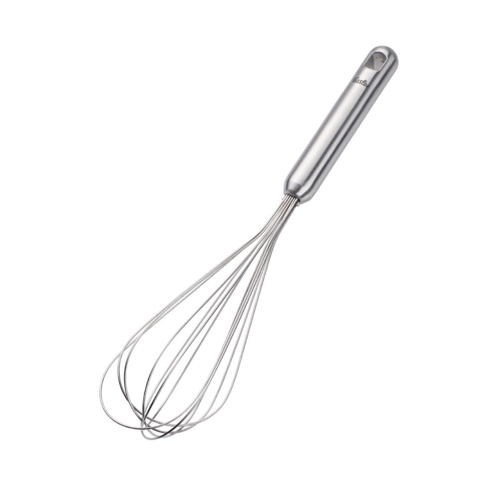 Με το Αναδευτήρι 25 cm Fissler Essential χτυπάς και αναμειγνύεις απαλά υλικά, πετυχαίνοντας ομοιόμορφο αποτέλεσμα χάρη στα λεπτά, ειδικά τοποθετημένα σύρματα. Είναι κατασκευασμένο από ανθεκτικό ανοξείδωτο ατσάλι 18/10 και η εργονομική λαβή σου προσφέρει άνετο, ασφαλές κράτημα. Καθαρίζεται εύκολα και διαθέτει κρίκο για πρακτική αποθήκευση.