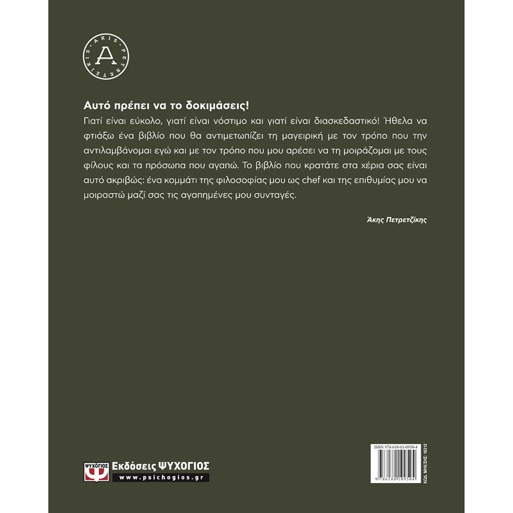 Ανακάλυψε στο βιβλίο αυτό τις μοναδικές συνταγές του Άκη Πετρετζίκη. Μέσα σε 360 σελίδες, θα βρεις συνταγές που θα σε εμπνεύσουν να δημιουργήσεις γευστικά πιάτα στην κουζίνα σου. Εξερεύνησε νέες γεύσεις και τεχνικές μαγειρικής από έναν από τους πιο αγαπημένους σεφ της Ελλάδας.