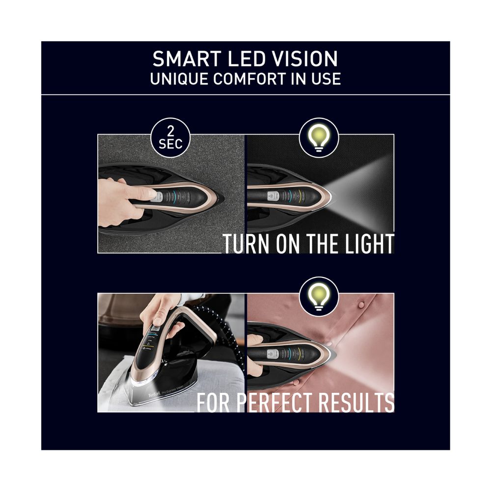 Το σύστημα σιδερώματος Pro Express Vision που φωτίζει τον δρόμο σου για αξεπέραστα αποτελέσματα. Με πανίσχυρη εκτόξευση ατμού και έξυπνο σχεδιασμό, προσφέρει τέλεια φροντίδα των ρούχων κάθε φορά. Το σύστημα Smart LED Vision βελτιώνει την εμπειρία σιδερώματος με λυχνία στην άκρη του σίδερου για απόλυτη ορατότητα. Κράτησε στα χέρια σου την τεχνολογία υψηλής πίεσης ατμού και απόλαυσε εξαιρετικά χαρακτηριστικά που καλύπτουν όλες τις ανάγκες φροντίδας των ρούχων σου.