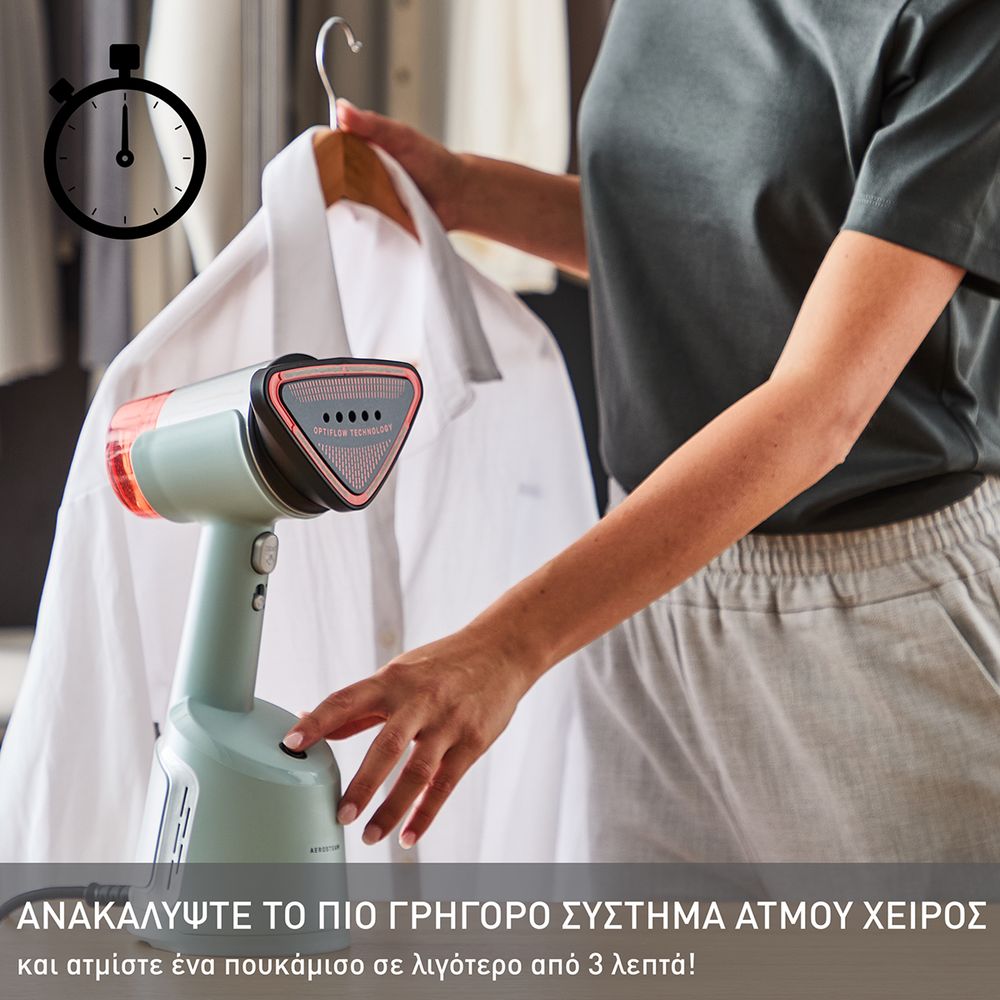 Απόλαυσε τη δύναμη της έλξης με το AeroSteam, το νέο σύστημα ατμού. Ξεκίνησε ένα επαναστατικό ταξίδι στη φροντίδα των υφασμάτων με τη μοναδική πρωτοποριακή τεχνολογία OptiFlow του AeroSteam που συνδυάζει άψογα τον ατμό και την απορρόφηση, για άψογα αποτελέσματα με ένα μόνο πέρασμα. Αναβάθμισε τη ρουτίνα φροντίδας των υφασμάτων σου με αυτό το πρωτοποριακό και καινοτόμο σύστημα ατμού χειρός και ανακάλυψε την ολοκαίνουργια, ολοκληρωμένη λύση για τέλεια αποτελέσματα χωρίς κόπο.