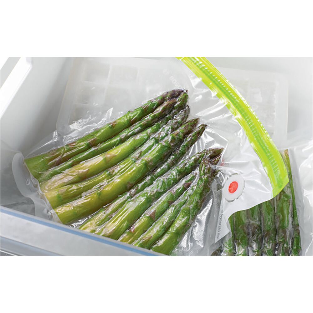 Σακούλα φαγητού κενού αέρος με φερμουάρ MSZV0FB1 της Bosch, για να διατηρείς όλα αναλλοίωτα και φρέσκα για μεγαλύτερο χρονικό διάστημα.