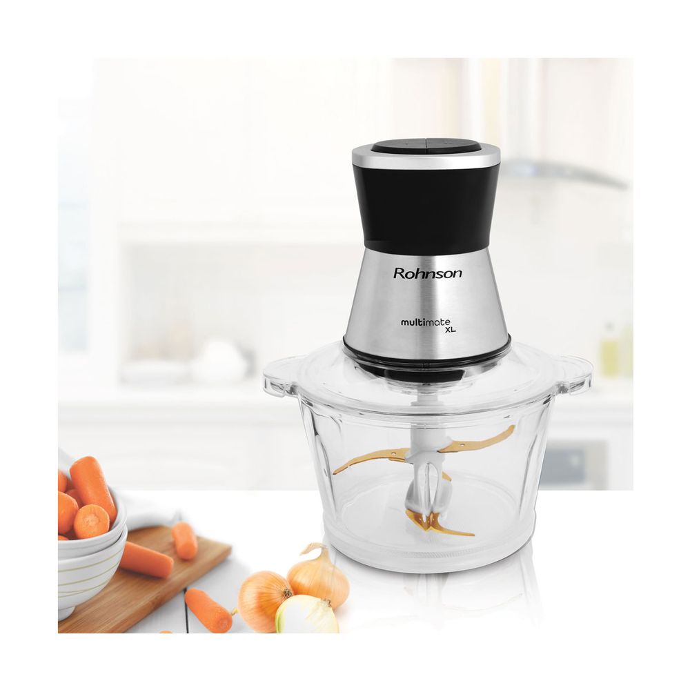 Ο πολυκόπτης της Rohnson R-5120 “multimate XL” με μπολ χωρητικότητας 2L, από υψηλής ποιότητας γυαλί είναι ο απόλυτος βοηθός στην κουζίνα σου - ιδανικός για κάθε παρασκευή με λειτουργία 2 ταχυτήτων κι 4 αποσπώμενες λεπίδες τιτανίου.