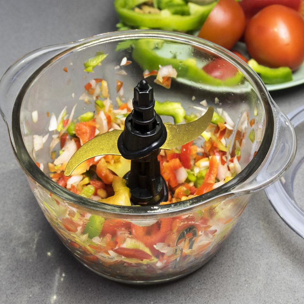 Με φινίρισμα από ανοξείδωτο ατσάλι και 4 αποσπώμενες λεπίδες με ρυθμιζόμενο ύψος και επίστρωση τιτανίου για άλεσμα ακόμη και σκληρών τροφών. Με δυνατότητα λειτουργίας με 2 ή 4 λεπίδες αντίστοιχα. Ανθεκτικό δοχείο γυάλινο. Με δυνατότητα θρυμματισμού πάγου μέσα σε μερικά δευτερόλεπτα και 2 επίπεδα ταχύτητας για προσαρμογή ανάλογα με τον τύπο του φαγητού. Διαθέτει έξυπνο σύστημα που ρυθμίζει την ταχύτητα ανάλογα την πίεση στον διακόπτη. Ιδανικό για το άλεσμα και τον τεμαχισμό όλων των ειδών κρέατος και λαχανικών. Εξαρτήματα αποσπώμενα και πλενόμενα στο πλυντήριο πιάτων. Περιλαμβάνονται: Δοχείο από γυαλί, αποσπώμενες λεπίδες. Διαστάσεις: 22 x 18.8 x 26 cm.