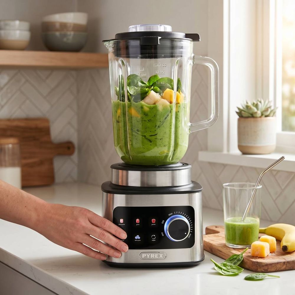 Το μπλέντερ Pyrex Inox SB‑881 1500W σου προσφέρει ισχυρό και γρήγορο αποτέλεσμα για smoothies, σούπες και ροφήματα. Με μοτέρ 1500W, ανθεκτική ανοξείδωτη κατασκευή και κοφτερές λεπίδες, πολτοποιείς εύκολα φρούτα, λαχανικά και πάγο. Ο εύχρηστος χειρισμός και ο στιβαρός σχεδιασμός το καθιστούν ιδανικό για καθημερινή χρήση με την αξιοπιστία της Pyrex.