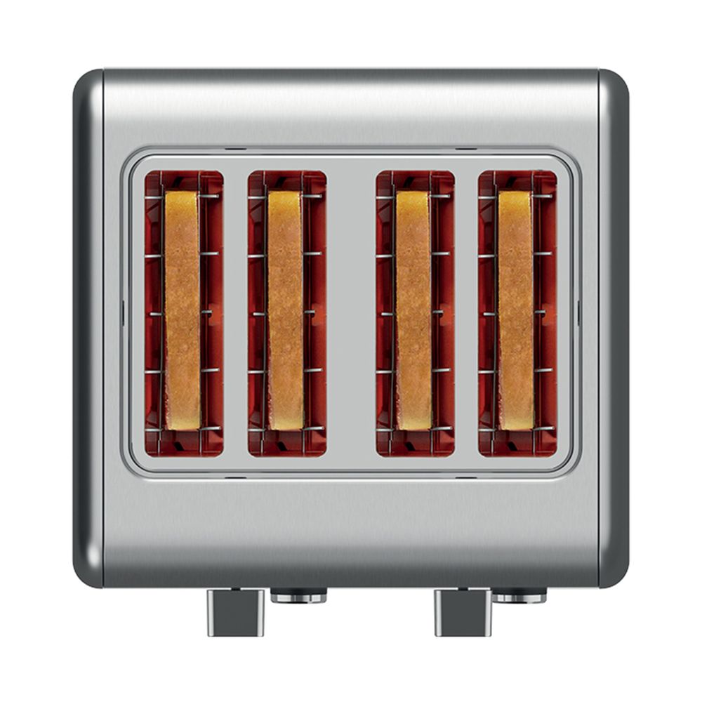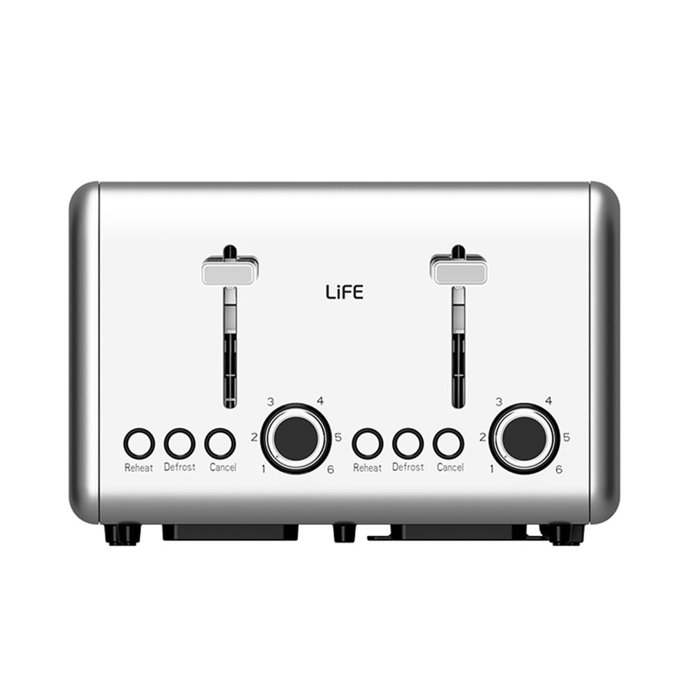 Φρυγανιέρα ισχύος 1500W με υποδοχές για 4 φέτες ψωμί, 3 πλήκτρα ελέγχου για απόψυξη, αναθέρμανση και διακοπής λειτουργίας και 2 αποσπώμενους δίσκους για εύκολο καθαρισμό.