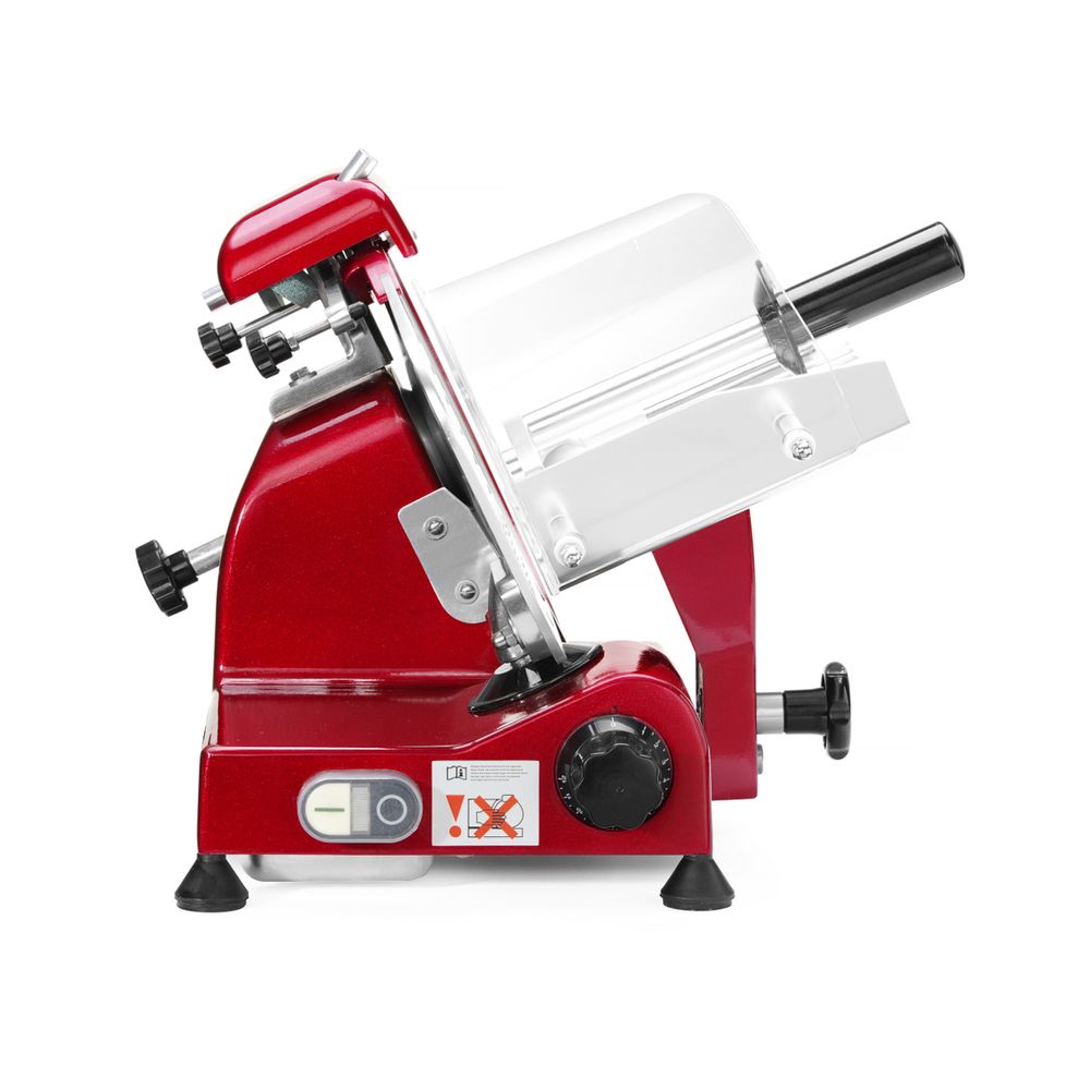 Μηχανή κοπής αλλαντικών Profi Line 220 με διάμετρο δίσκου 220 mm, ρύθμιση συνεχούς κίνησης για πάχος φέτας μέχρι 12 mm και μέγιστη διάμετρο φέτας 150 mm.