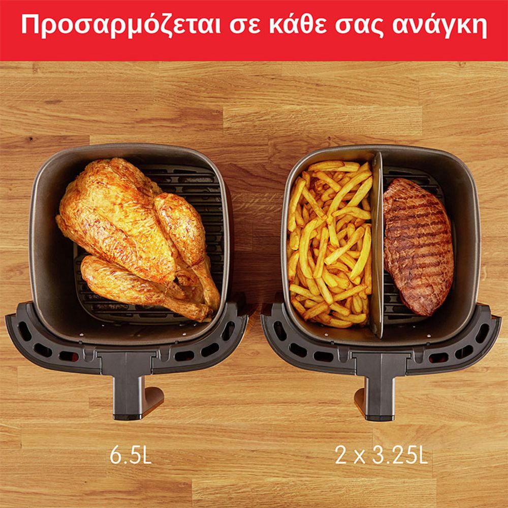 Απόλαυσε νόστιμα, υγιεινά γεύματα από τη δική σου κουζίνα με την φριτέζα αέρος Moulinex Easy Fry & Grill 2-σε-1 XXL. Το αφαιρούμενο διαχωριστικό Flexcook επιτρέπει να μεταβείς εύκολα από τη χωρητικότητα XXL που εξυπηρετεί έως και 8 άτομα σε δύο ζώνες για να μαγειρέψεις δύο διαφορετικά φαγητά για να είναι έτοιμα ταυτόχρονα.