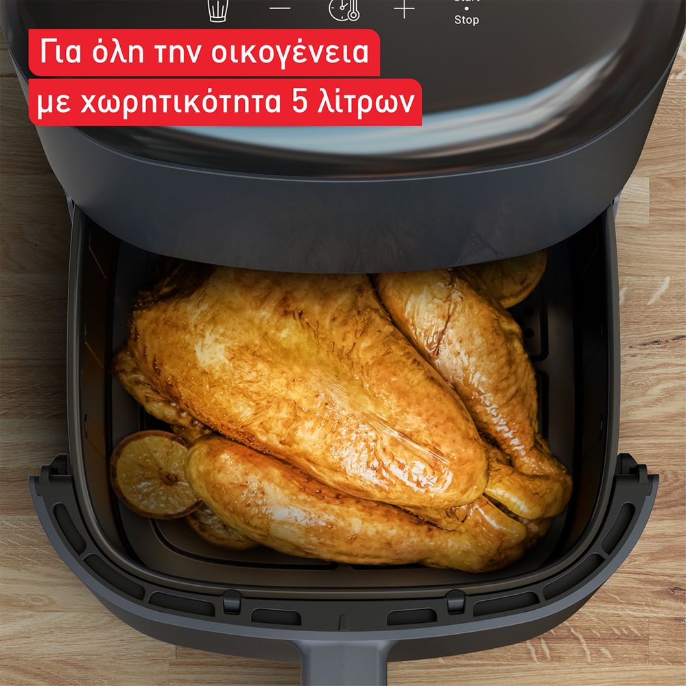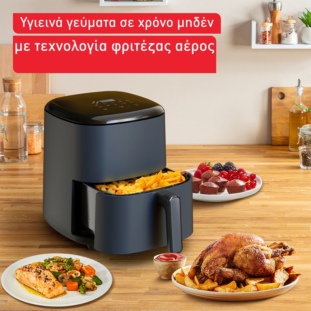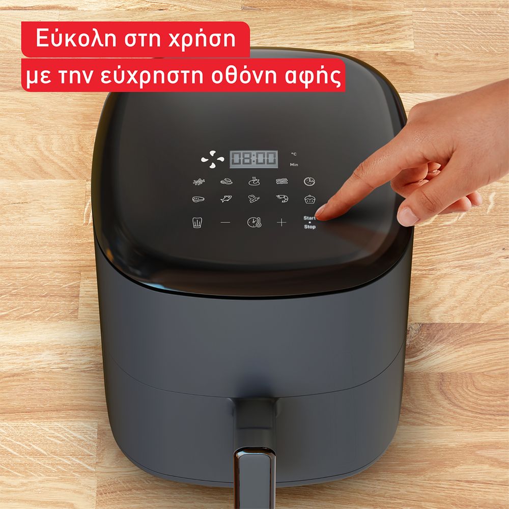 Απόλαυσε νόστιμα και υγιεινά γεύματα στο σπίτι με μια εύχρηστη φριτέζα αέρος! Αυτή η μεγάλη φριτέζα αέρος είναι εξοπλισμένη με προηγμένη τεχνολογία ζεστού αέρα για γρήγορο μαγείρεμα με ελάχιστο έως καθόλου πρόσθετο λάδι, μαζί με 10 προγράμματα αυτόματου μαγειρέματος για απόλυτη ευελιξία. Ανακάλυψε μια μαγειρική εμπειρία χωρίς έγνοιες που θα ενθουσιάσει όλη την οικογένεια, από άψογα τραγανιστές τηγανητές πατάτες μέχρι λαχανικά, ακόμη και επιδόρπια.