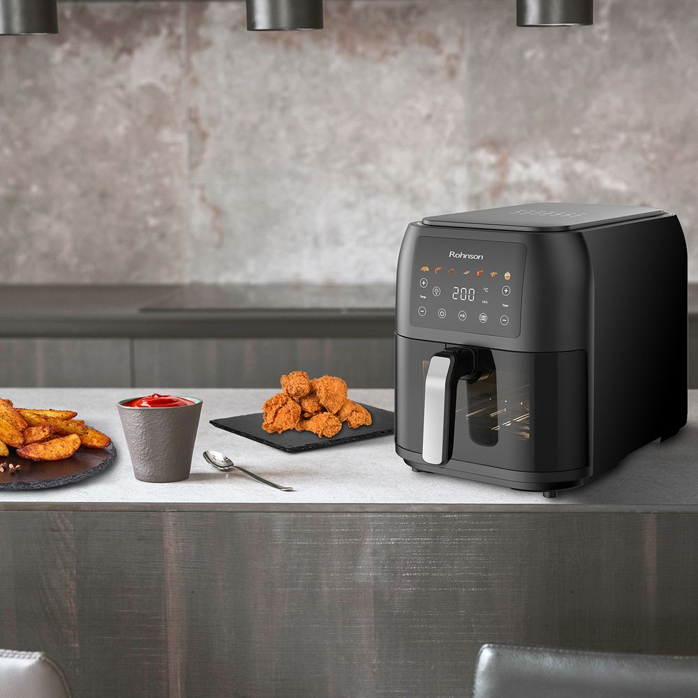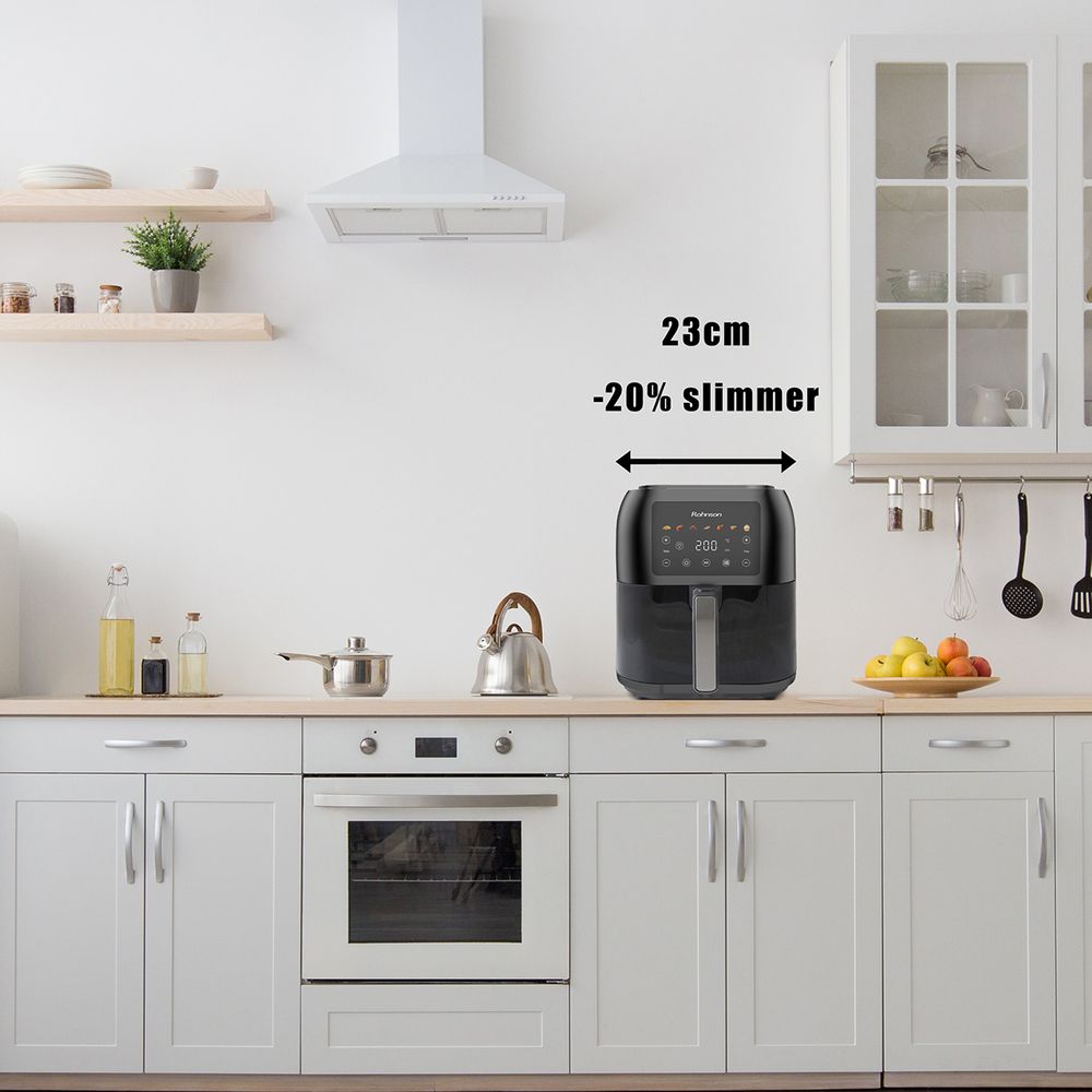 Η Slim Φριτέζα Αέρος της Rohnson R-2860, ισχύος 1700W, σου προσφέρει ευκολία στο μαγείρεμα με τον καινοτόμο λεπτό της σχεδιασμό, εξοικονομώντας χώρο στην κουζίνα σου. Ο μεγάλος αποσπώμενος κάδος χωρητικότητας 8Lt σου επιτρέπει να μαγειρεύεις μεγαλύτερες ποσότητες γευμάτων με άνεση για εσένα και την οικογένειά σου, ενώ το διπλό τζάμι που διαθέτει, σε βοηθάει να παρακολουθείς την πορεία προετοιμασίας του φαγητού ανά πάσα στιγμή.